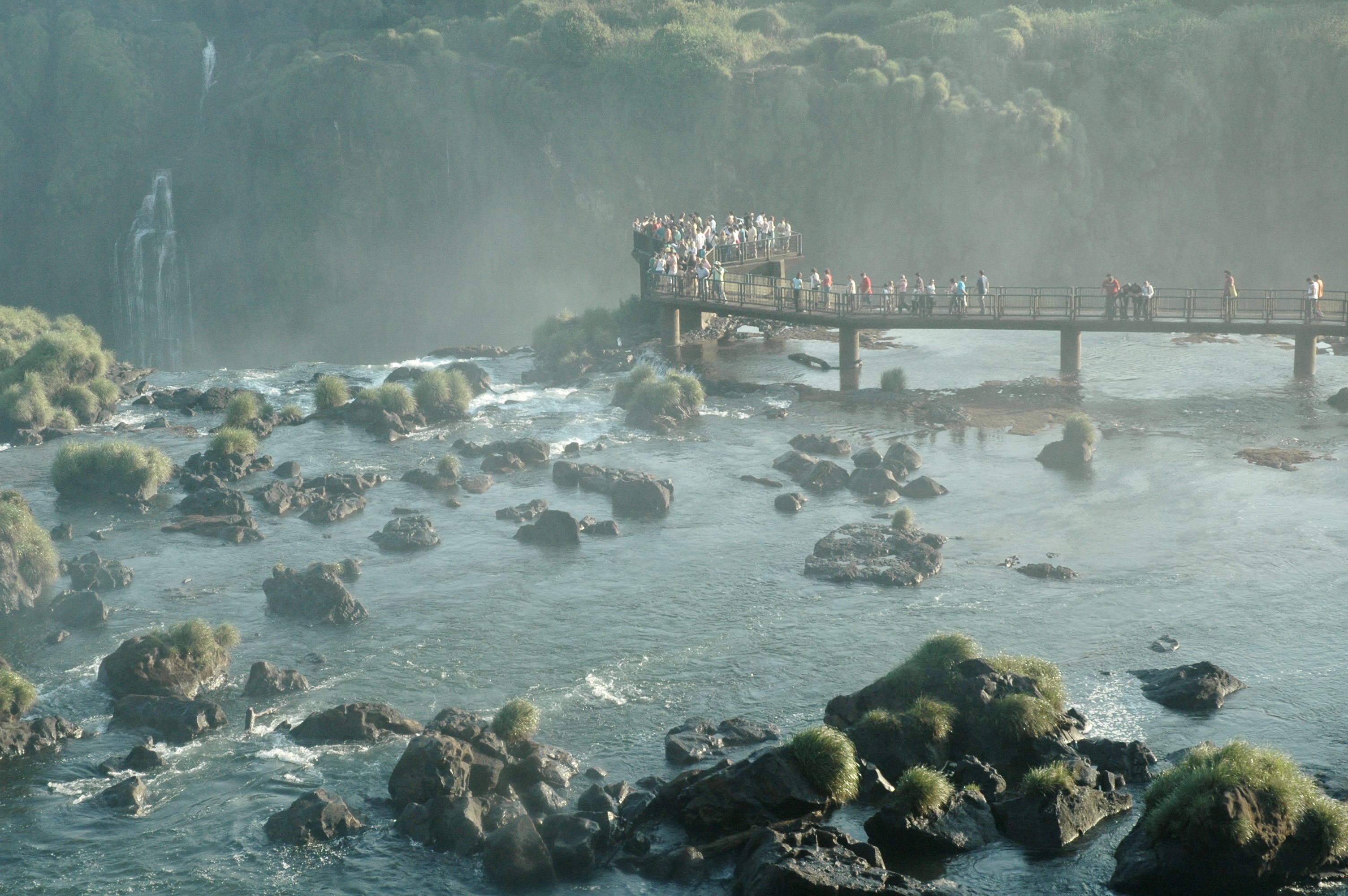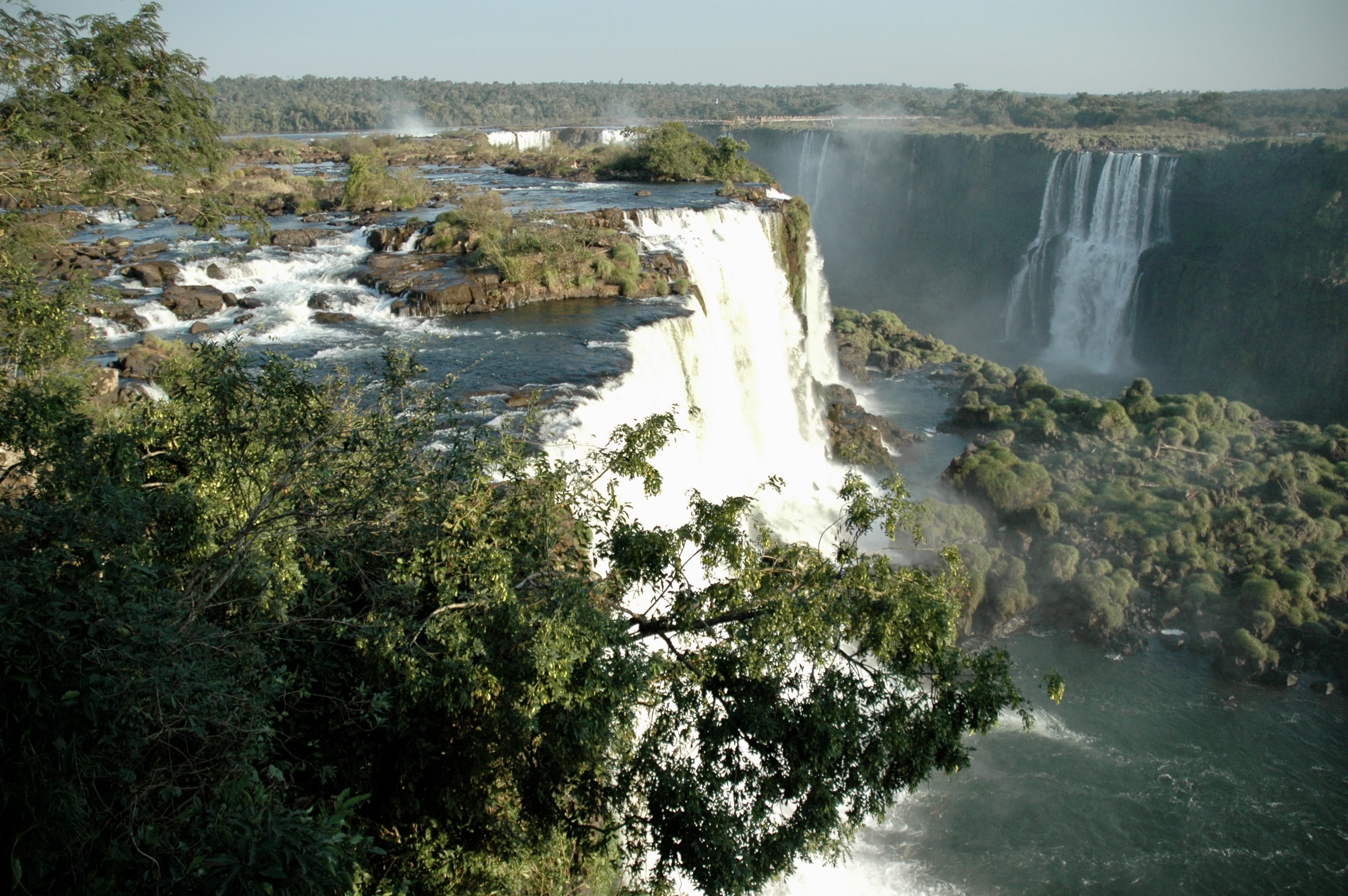 After landing in Iguacu, we opted to take the hike to the falls on the Brazil side rather than sleeping.. a decision that could be questionable.. Anyway, it was quite spectacular, but nothing compared to the hike today on the Argentine side.. I´ll tell more tomorrow as my purchased time is running out on this computer.. but the trek to the Argentine side is a 45-minute drive and then once you are in the “park” you take a little train to the start of the hike (although on the way out we bypassed the train and walked) … That side is far more spectacular and the walks through the rainforest bring you fairly close to the falls.. You’re constantly getting sprayed… The falls are huge.. with drops of about 30 stories or so… and there are literally hundreds of them… We managed to extend our walk and get back too late for the taxi driver that we had already paid to wait for us.
