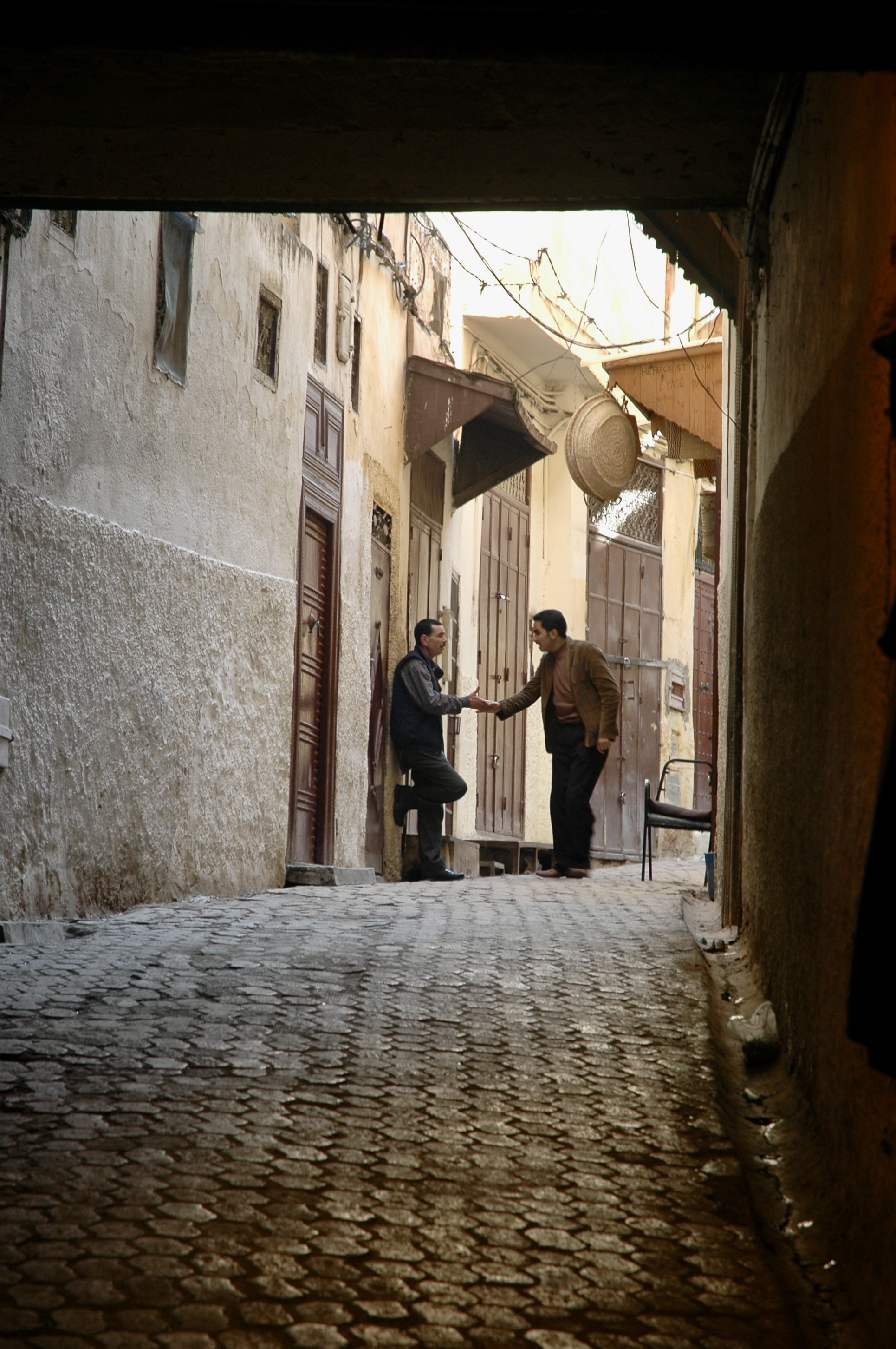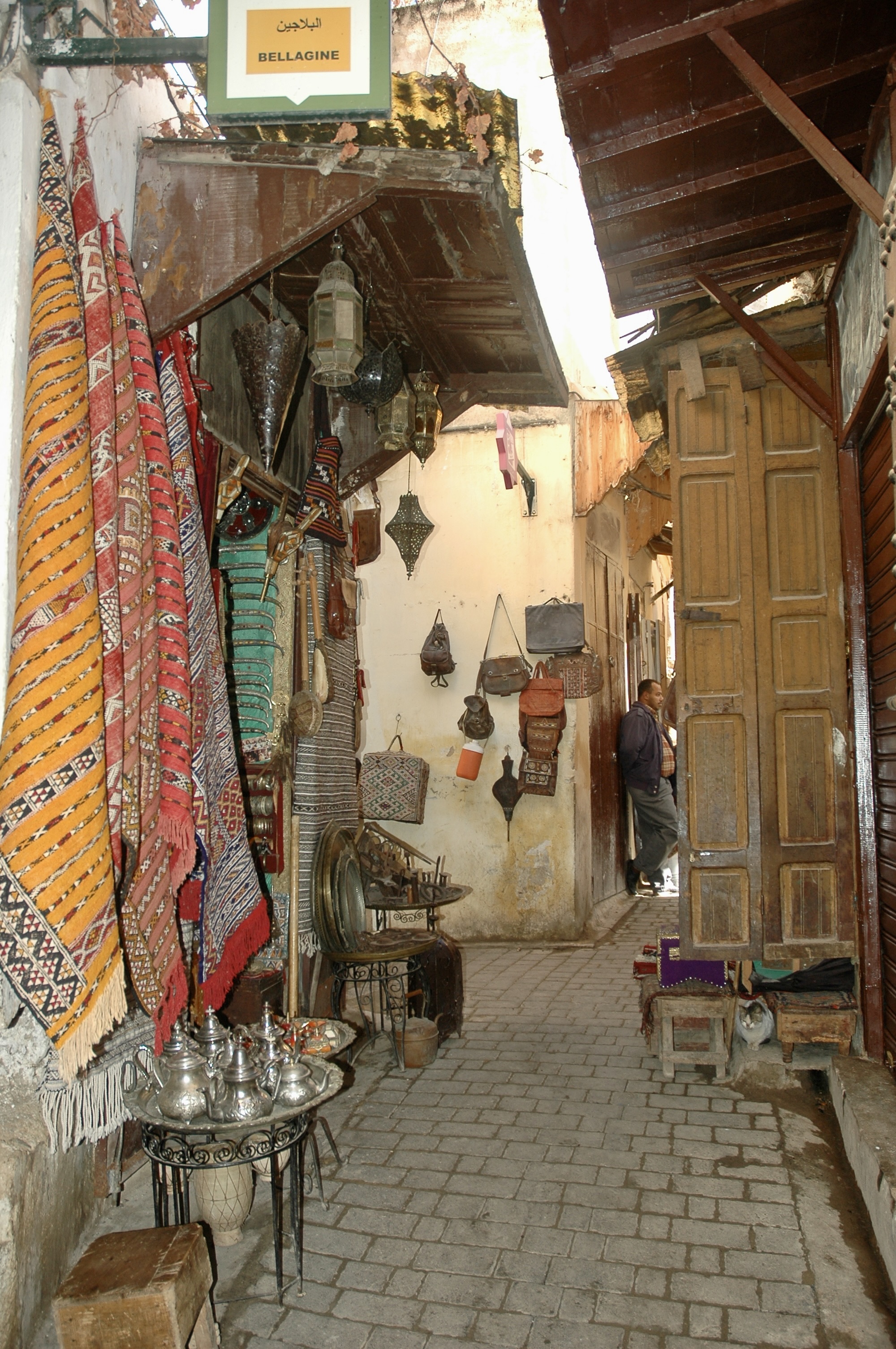 The rest of the day we walked and walked and walked – from one end of the medina to the other and then winding our way from mosque to mosque and from medersa to medersa (schools) and from fondouk to fondouk (buildings where traders used to stay – with balconies and rug dealers and a misty sort of light flowing from cracks in the wooden balconies and from burning fires – sort of like a Delacroix painting. At one point, totally exhausted, we stopped in a little tea place about the size of a small closet. It looked like it was set up in the 60s when American hippies were roaming this area en masse. As we sipped the tea we heard a sort of Moroccon hip-hop music being played live.. and noticed that there was a little ante-room to the closet space and some young guys were playing music. We talked with them a bit and found out about the various instruments.. and learned they had cut a CD. Their group’s name is City Clan!.. Later in the day we stopped at a music shop and picked up the recording. True rock stars!