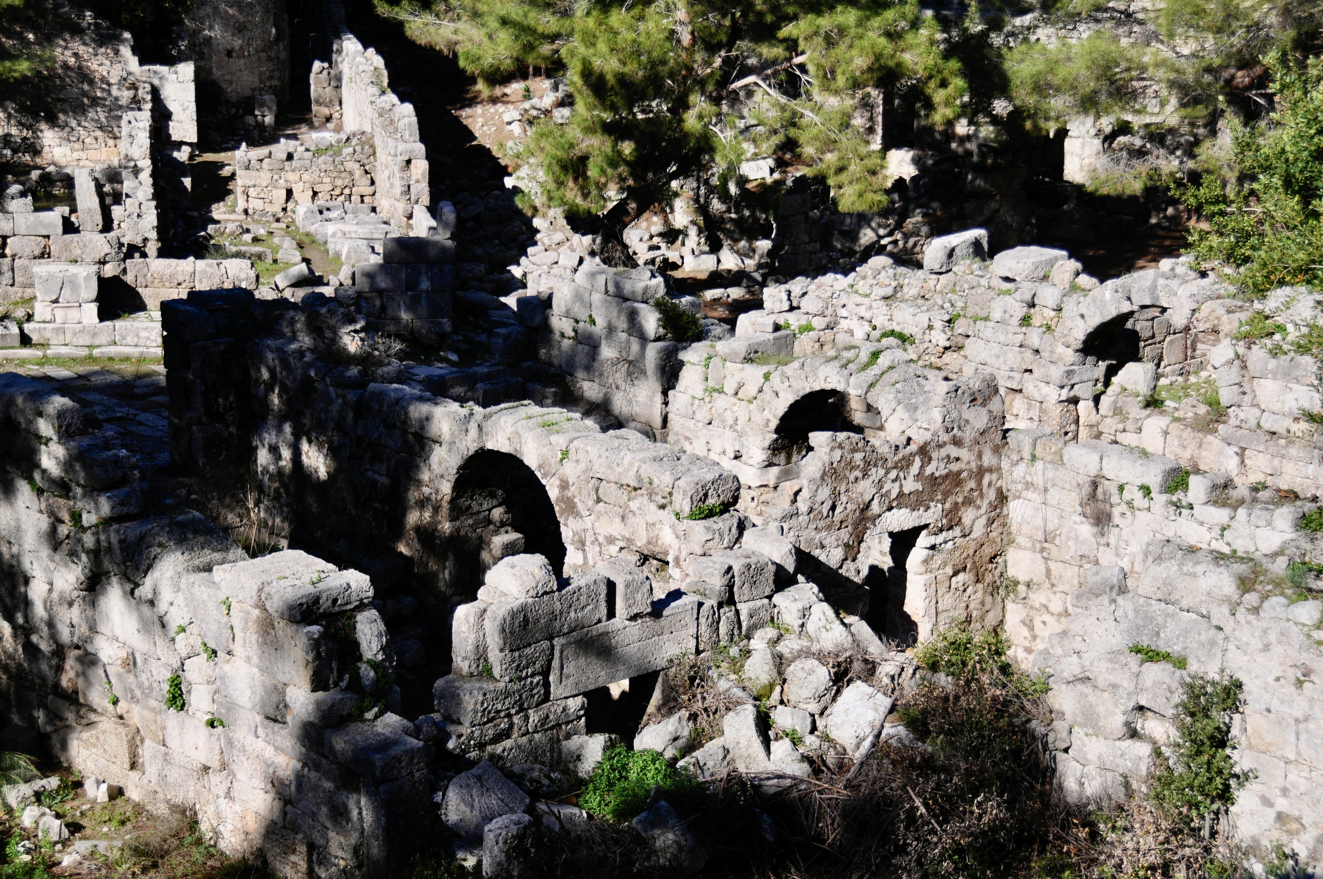 This morning we headed out of our little paradise and drove down the coast (south) stopping from time to time to admire the absolute beauty of the sea and beaches as well as the cliffs and mountains that surround them. We stopped at Phaselis (sp?)– which is situated on three small bays, protected within a national park. In Roman times this was a thriving port town. Today the bays, ruined limestone aqueduct, a great amphitheater whose stage is framed by snow capped mountains are clearly the remnants of once-prosperous Phaselis.