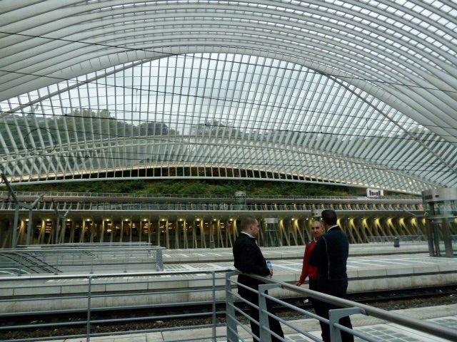 Arrived in Liege at about 8:35; the ticket I had was for the 10:09 train, but again I looked at the board and there were three trains leaving before 10:09, so I went into an office and they said I should take the earlier train — it would be better for my next transfer. They said to take the 9 am train from Platform 3… That was a piece of cake. Got to the platform.. train arrived (on time as always).. and I boarded, took a seat. It was to be another short run .. Once the train left the station the porter came by to collect tickets, and informed me I was on the wrong train.. destination was ok.. but I was on a “fancier,” faster train.. and needed to pay an additional 19 Euros (about $24) beyond my original ticket which was not cheap… I questioned this, but his English was weak.. and so just ponied up… Then I realized my ticket was for a “local” train; this was a luxurious express train.. headed to Paris (after stopping in Brussels..) So I had a very short (35 minute), rather pricey, luxurious ride.