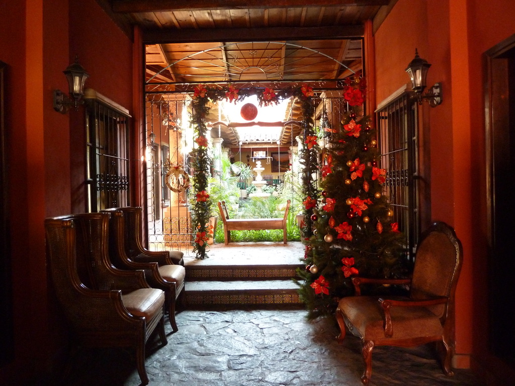 So, we are now back from the “birthday dinner.” La Casita was not exactly what I had expected.. but definitely a local joint. Food was pretty basic — meat, plantains, rice, and beans.. no alcohol. The place was packed with families and young couples. After dinner we went back to the town square Parque Nacional.. and searched for a place to have a drink. Had a beer and strolled back to our hotel – the Casa Grande which has a charming little courtyard; the place was pretty empty..