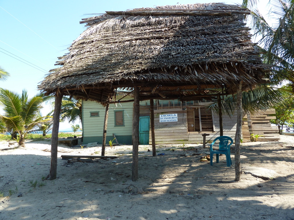 So, Miami is a village of about 200 people — all Garufina — a people who trace their ancestry to Africa and Carib Indians. They live without any electricity, and no running water, in thatched huts that are about 150 sq ft… There’s a tiny school for the very young children (some of whom followed us everywhere). I gather they get occasional tourists — mostly at a special holiday — Semana Santa — at Easter time. The Garufina don’t believe in government; they just think evryone should do the right thing. How novel!