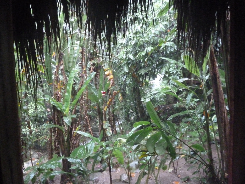 It began to pour (and rain in the jungle is loud and intense, although often it’s so dense that you don’t even feel the rain), just as we all piled into a van to head to this Christmas turkey dinner up the road. Wasn’t exactly what we imagined and it was a bit odd to have a real American meal in the jungles of Honduras, but I think Bruce really wanted a break from work, and we all accommodated. We met several of the ex-pats who are living and working in Ceiba—some are in the tourism industry (mostly guiding rafting trips and hikes, or managing small hotels) and some are working with NGOs, including an interesting young woman from Altoona, PA (very close to Penn State’s main campus at State College, where Mike and I once taught) who is running an after-school language program for 10-20 year olds, where photography is also on the curriculum, and where the goal is to encourage young people to think about sustainability for Honduras. They do a lot of training in eco sustainability, and some of the kids give guided tours through the jungle. (www.guaruma.org). Seemed like a really good organization.