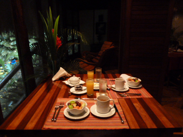 To finish off Christmas Day (yesterday).. there were eventually 6 of us at Las Cascadas, by last night. We met the couple that arrived before we did — Harvard grads about 35 years old; PhDs (she in neuroscience – studies memory loss PhD from Cambridge; he’s Canadian in finance – did his undergrad in sociology and PhD also at Cambridge in International Trade). They live in Toronto, where she’s on the faculty at the University of Toronto. The other couple who arrived just before dinner were Hondurans who live in San Pedro Sula and were (I think) a bit annoyed to hear all this English being spoken.