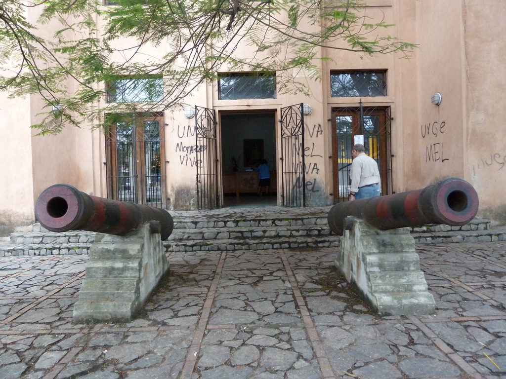 Wherever you walk, you spot political graffiti (not quite rivaling the proliferation of Coca Cola messages) — mostly in support of the ousted president Zelaya (referred to as “Mel”)… He was first a conservative and then became a liberal (son of wealthy family involved in logging and timber) and forged an alliance with other Latin American countries, most notably Venezuela’s Chavez. In Parque Central there are many banners supporting equity and justice and a plaque dedicating the park to Zelaya who was ousted in a coup about 18 months ago. So now the country is run by the military. There seems to be a lot of difference of opinion as to how much Zelaya accomplished. He attempted to do major land reforms (in a country where about 90% of the land is owned by about 1% of the population and where unemployment is recorded at about 25% and poverty rate is more than 50%). Apparently he even wanted to reveal the salaries of the wealthy, etc.