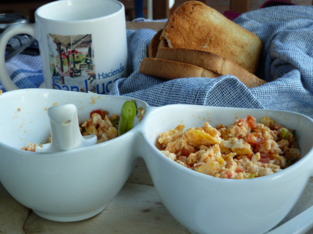 Last night was quite an experience. With our one electrical outlet in the bathroom and the very large amount of electrical wire wrapped around a wooden cable that is about 2.5 feet in diameter in the center of our room, we set out to get connected to the outside world. And of course our 15 candles and two solar powered lamps that provide about 15 watts of light each.. It all worked fine, especially with all the light the computers gave off. So, feeling quite secure, we went to dinner at the hacienda at about 8. The dining “room” is really outside the main farm house (the entire place had been a farm — more on that later). Hundreds of candles light the area, so it was totally charming and the night air was perfect.