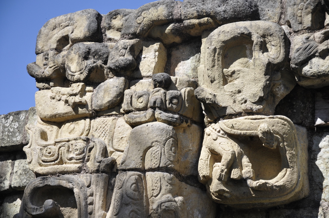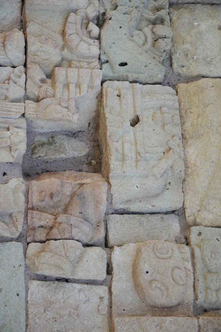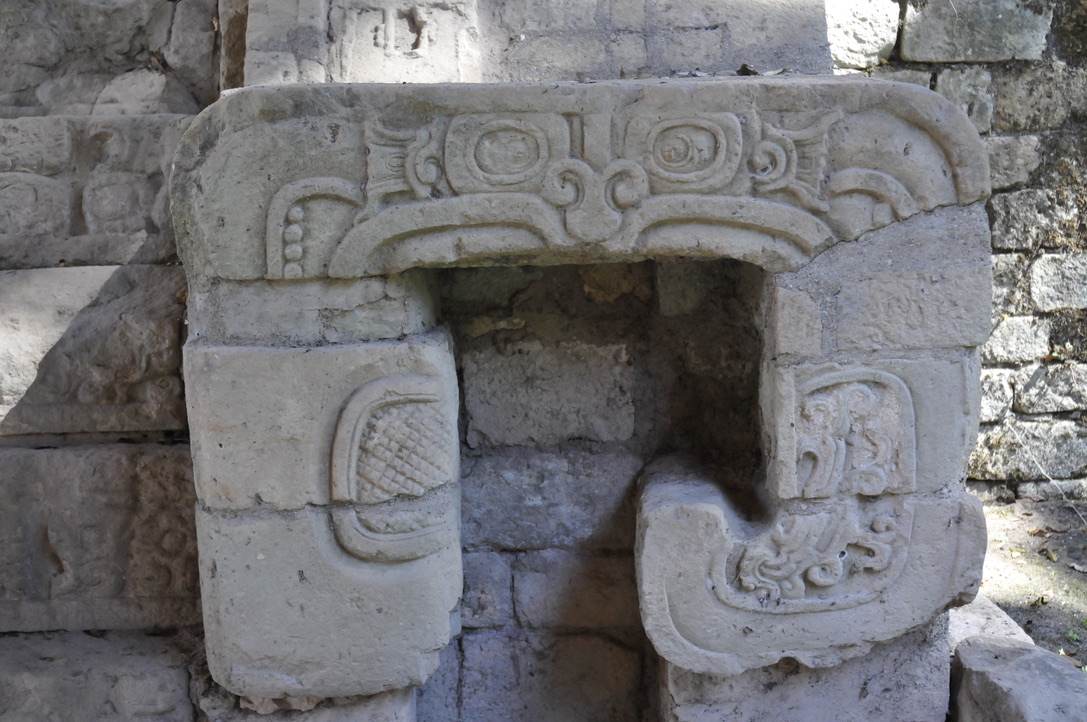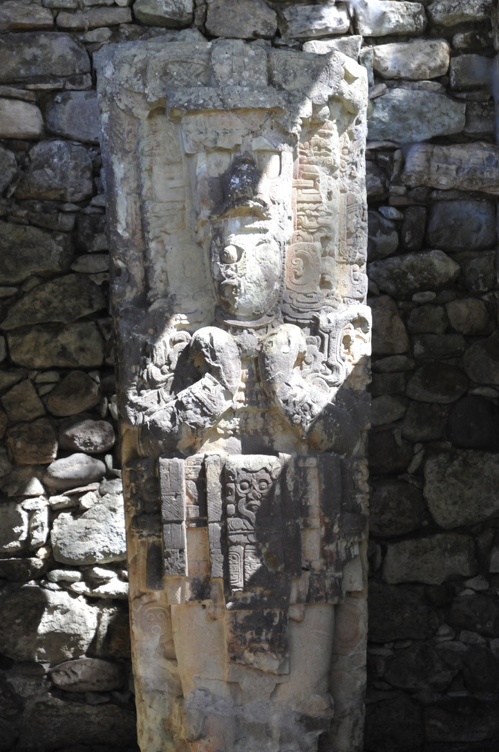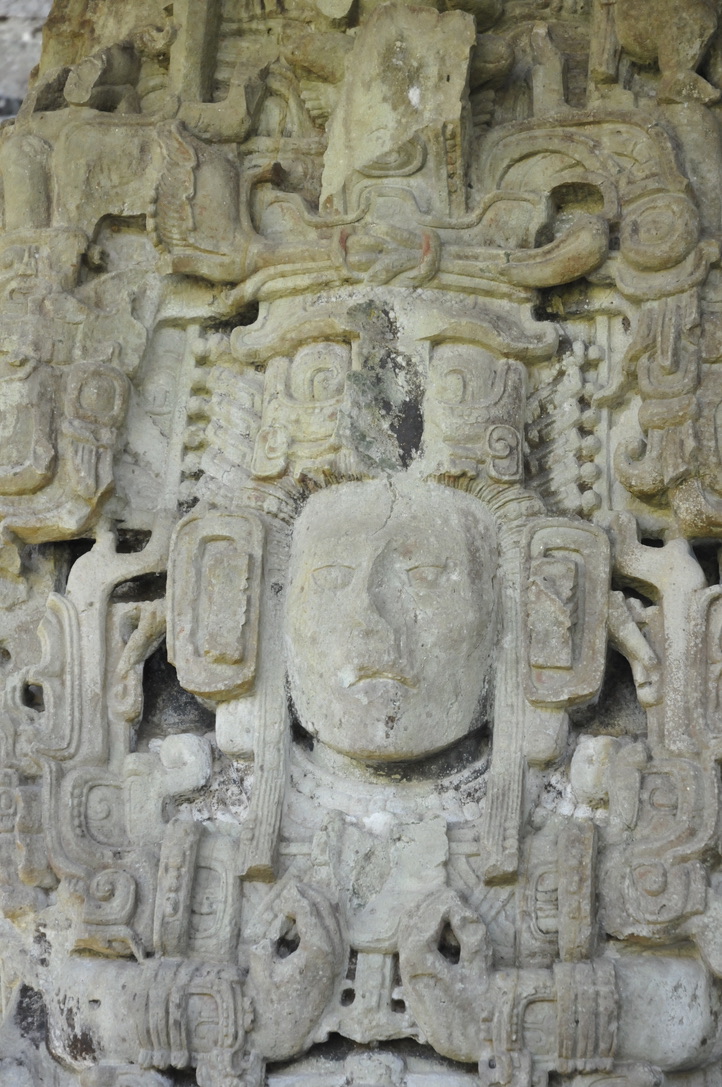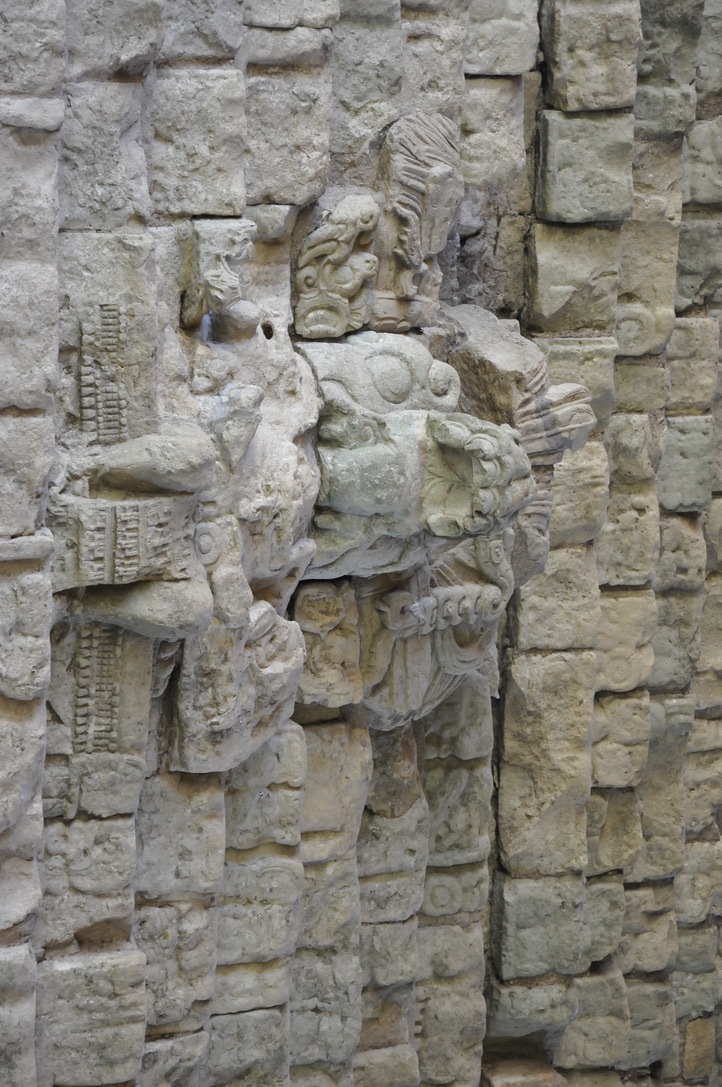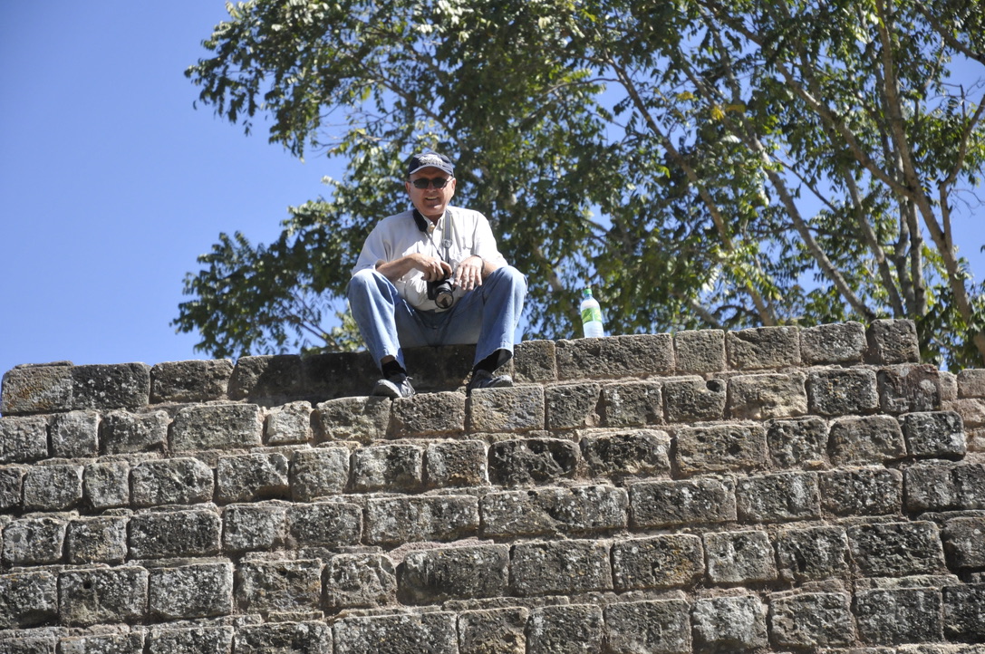 We drove to the ruins late this morning.. after a leisurely breakfast and walk around the grounds. Once again we drove down the very very rocky road along the river, up and down hills; having to move aside for any other vehicle or vice versa… and then through the town and to the Parque Arceologico. The Mayan “city” is interesting and fairly sprawling, but nothing compared to the likes of Tikal or Palenque or Tehuacan, and other sites we’ve seen over the years. We walked and climbed the site for about two hours. The Mayans’ quest may have been for language and mathematical and astronomical systems to explain life and the world; my quest was for shade! It was hot.. in the mid 80s and very humid (just think — this is the coldest time of year). It’s very pleasant in the shade when there is a breeze, but the walk through the ruins is in the hot sun. This is not my strength. But we walked the site — slowly and with two water bottles we bought at the entry.