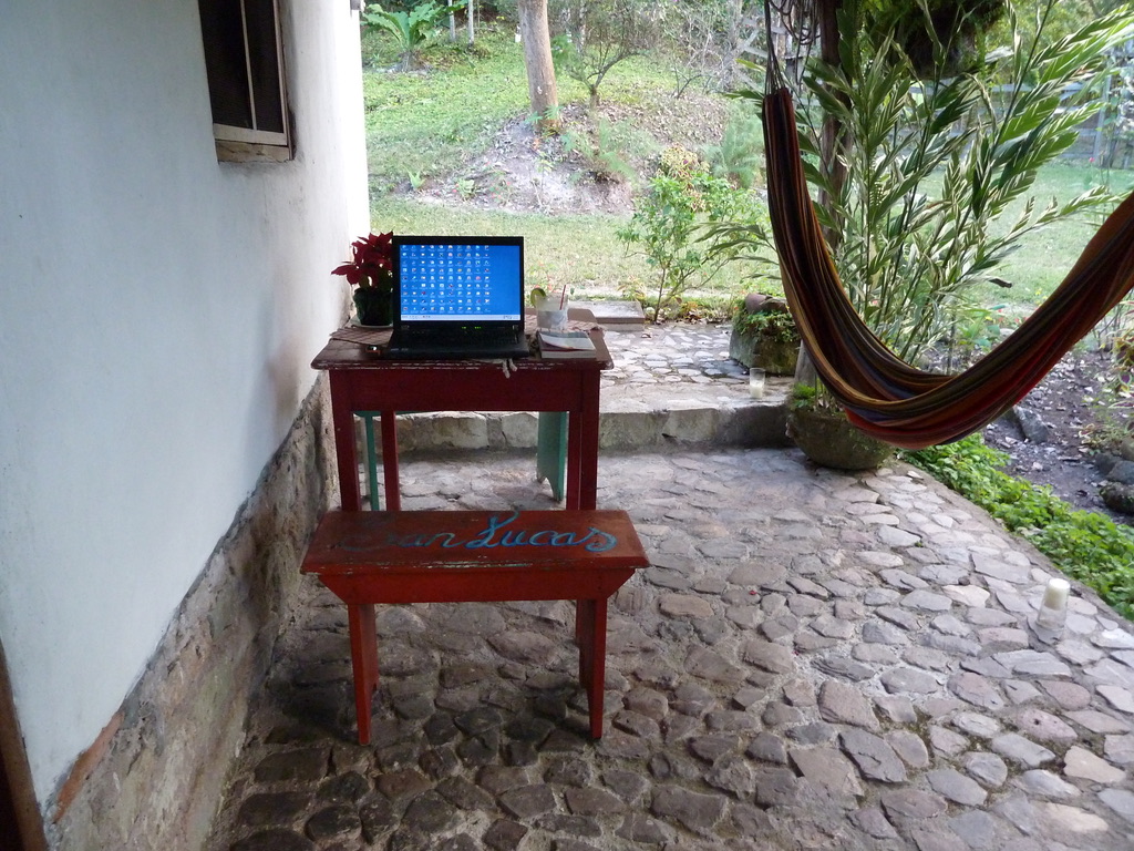 Here I sit in the office area of Hacienda San Lucas, high above the river that runs through the town and about 6 kilometers from the “bustle” of the town of Copan (which is a more touristy town than any we’ve been to so far, but cute with many tiny shops, restaurants, cafes, and a very nice parque central).