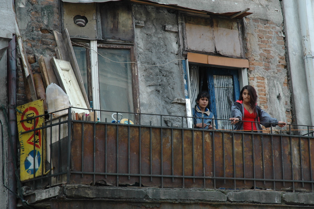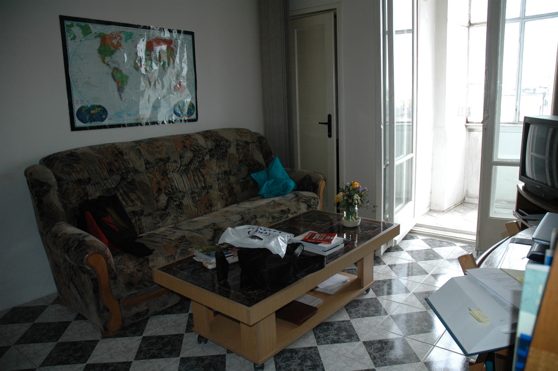 Well it’s nearly midnight and I’m going to call it a day. It’s been another hectic day in Romania, but filled with interesting experiences and people. Started off at the market fairly early to get stuff for breakfast, which we then ate at our friend’s apartment — a fairly typical tiny apartment, Romanian style — about one power source in each room, max –two rooms only…very teeny kitchen — just enough room to stand and cook with everything in arm’s reach; no closets at all. But efficient, and most important for her, she was able to negotiate an Internet line. The building, like most, is in a state of semi disrepair, but she brought duct tape with her from the states and she’s managed to make everything work!