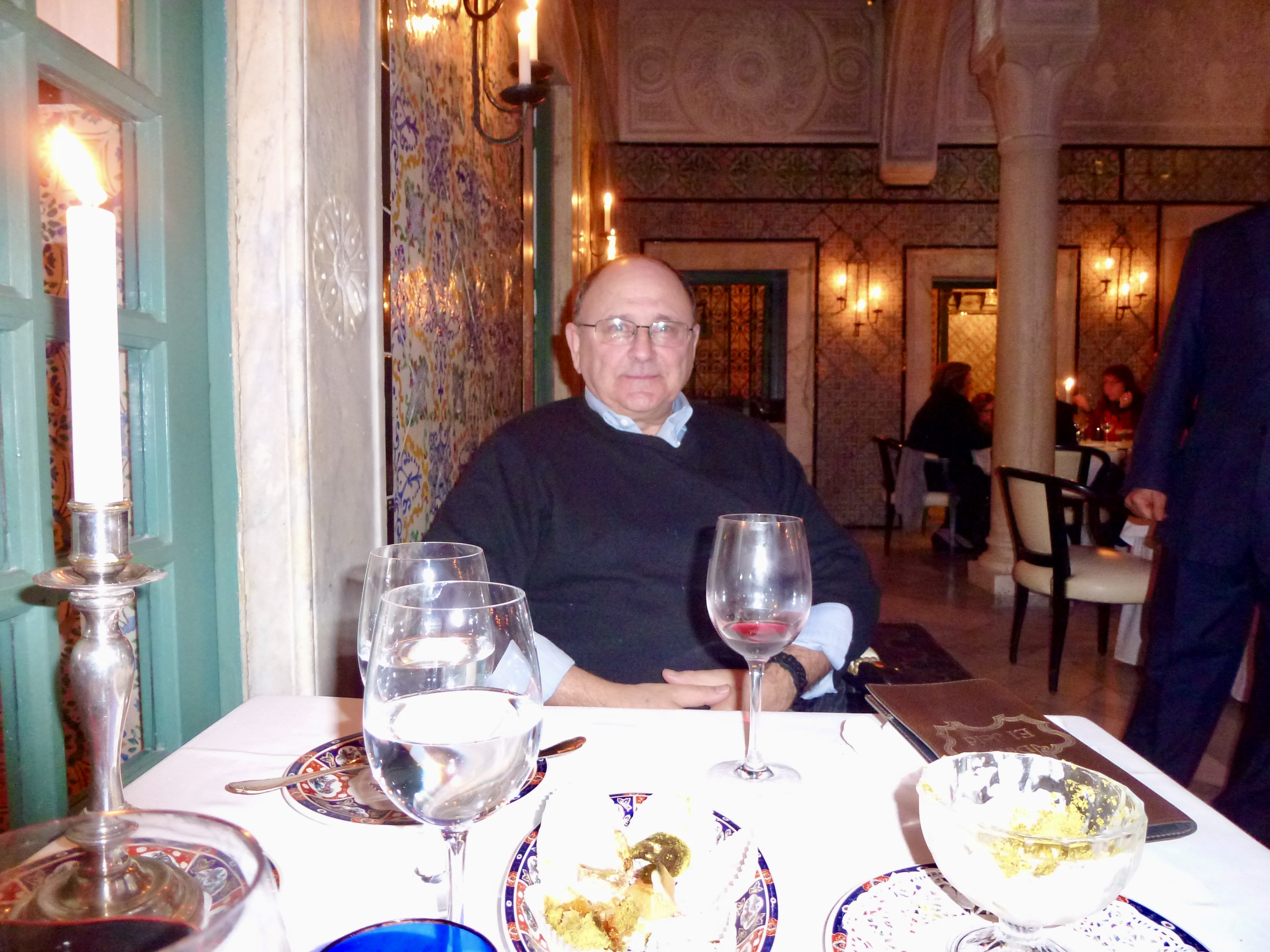 OK.. just returned from tres cher dinner (as everyone told us when they recommended Dar El Jeld for Mike’s birthday dinner…Space quite wonderful — tile on tile on tile… interior courtyards.. no westerners; I assume all the diners were wealthy Tunisians… Not much English. .. we are struggling with French, since menus are so difficult to follow..
