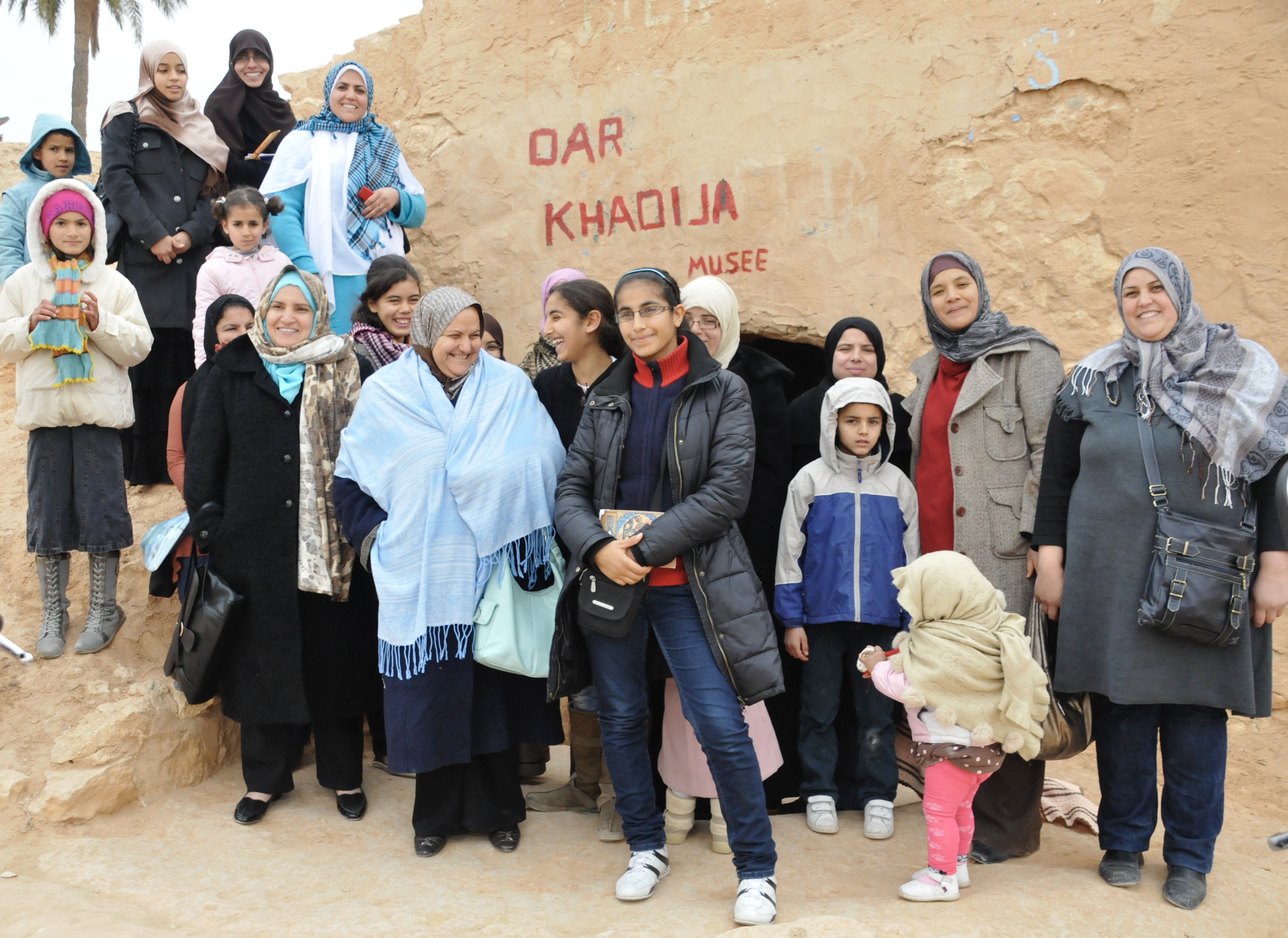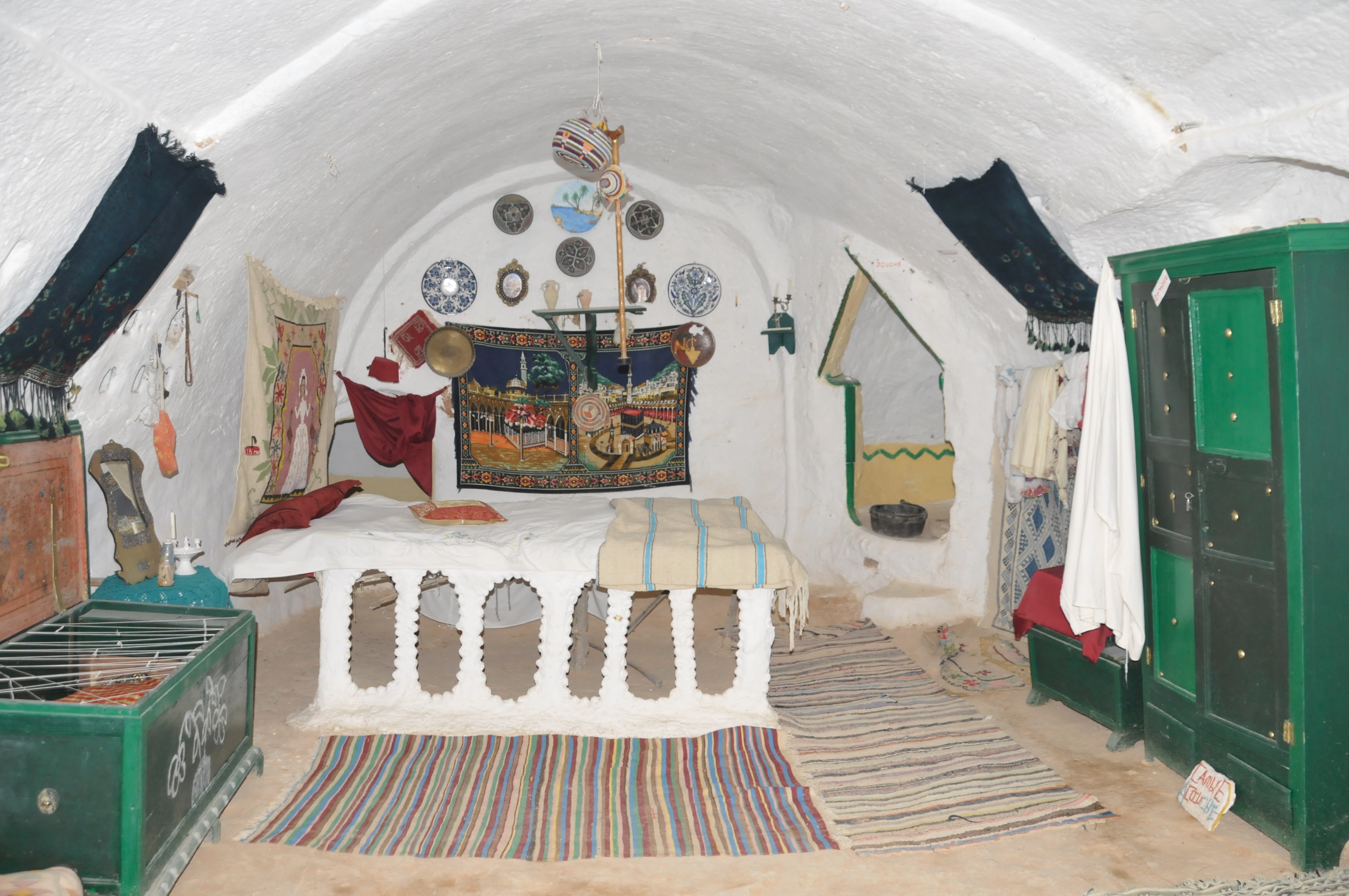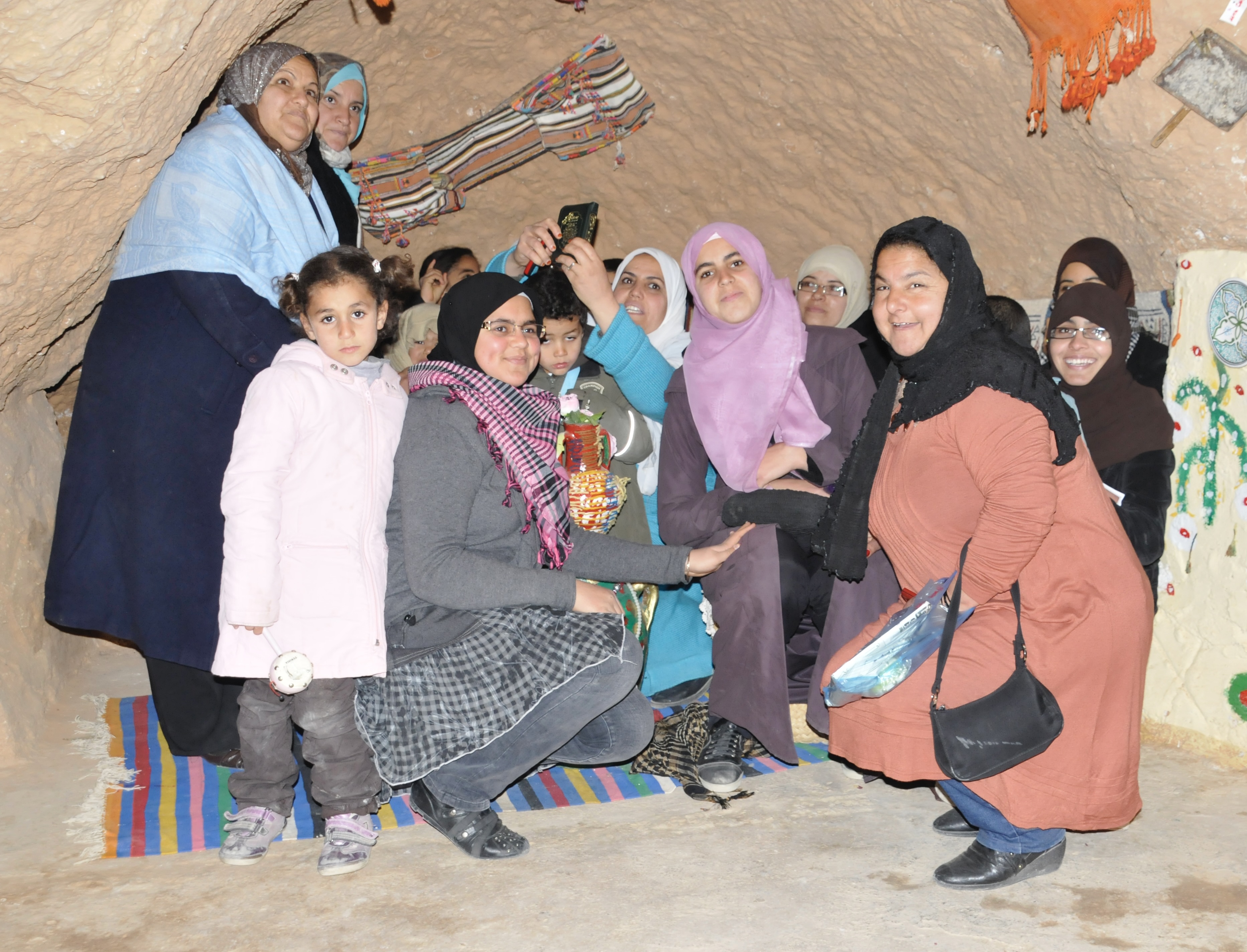 We found our way to the tiny Berber Musee (located inside one of the cave houses) and explored the many rooms and courtyard… The only other visitors beside us was a group of about 20 Tunisian women (varying in age from about 20 to 50 and with some young children. They were totally fascinated that we were in Matmata (which appeared to be a first time trip for them). They were surprisingly open and friendly and also having lots of fun on this travel adventure… taking pictures of one another and a lot of group shots.. They also liked the echo-y quality of the caves and started to sing a song in Arabic… the trilling of the la la la…