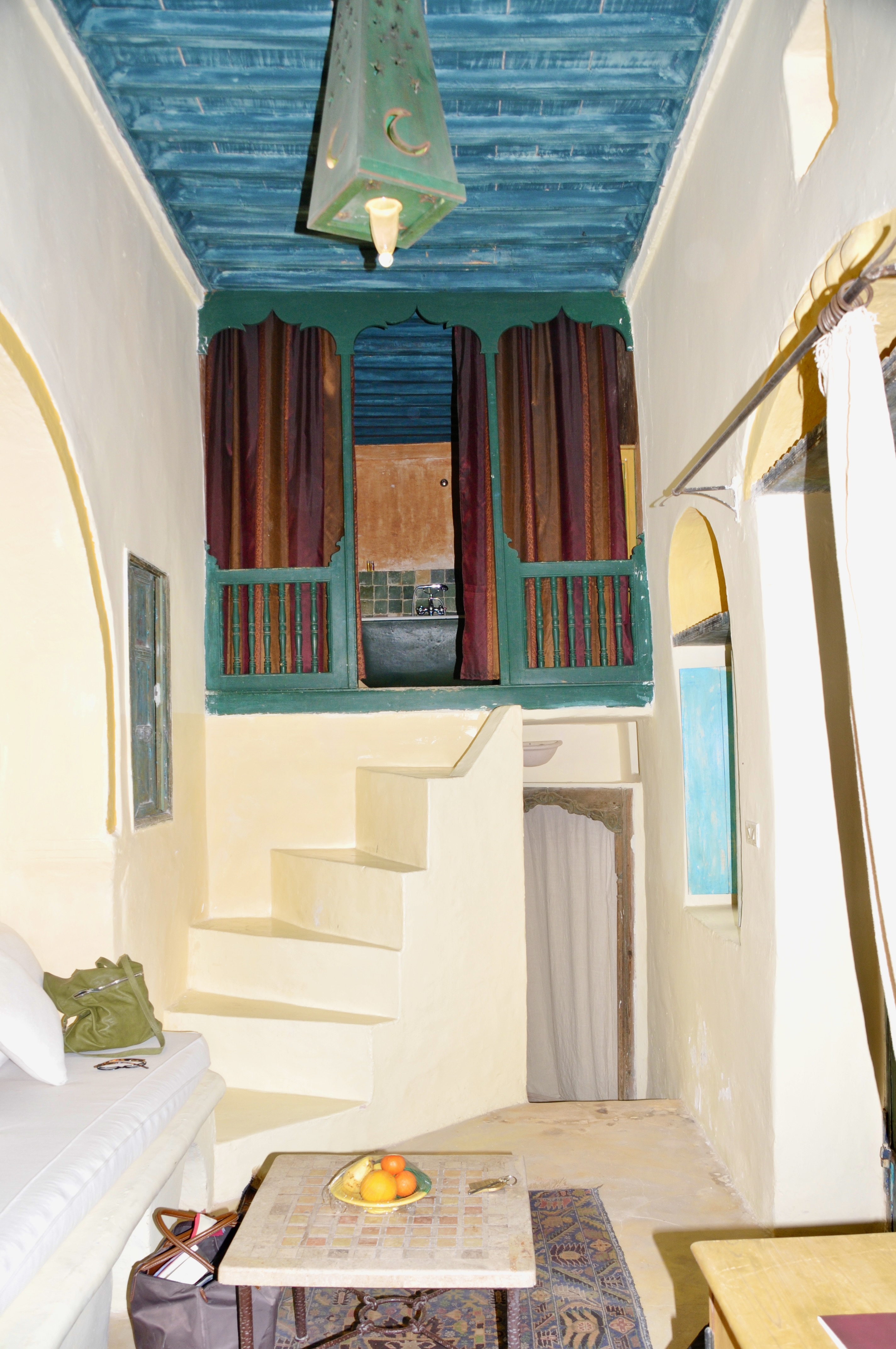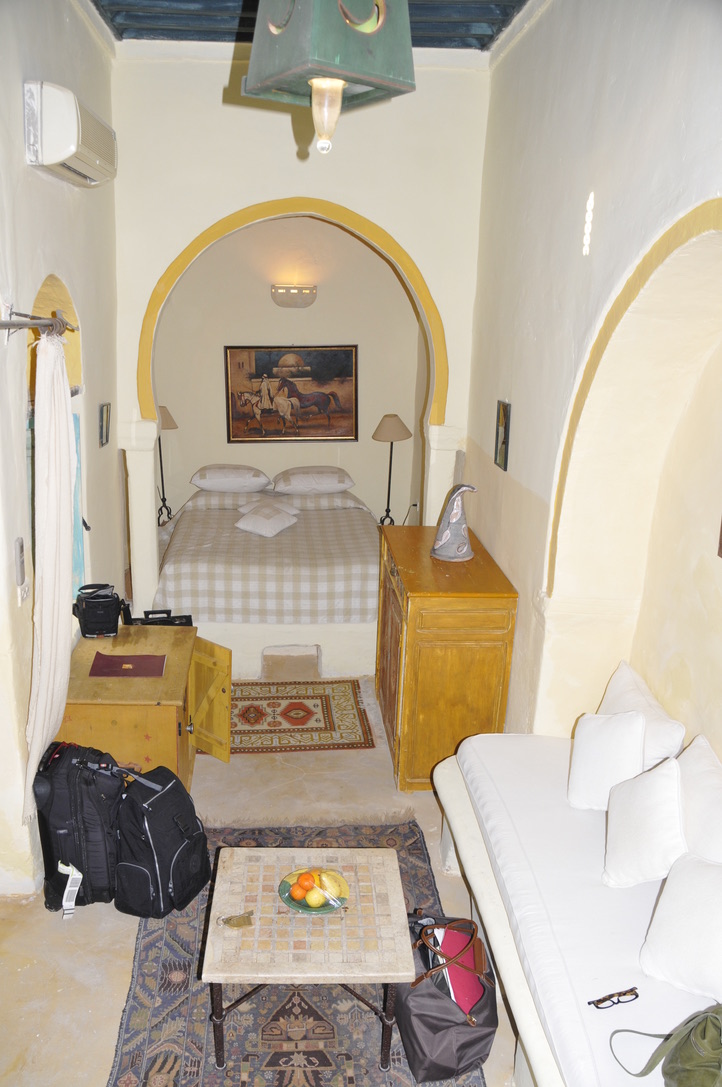 Then we drove across Djerba to the northern tip.. to find our little 14 room “hotel.” As we hit the northern tip and headed east (as our written Google directions explained.. iPhone GPS couldn’t locate us) we knew we were lost. We must have stopped at least ten different people along the way.. each giving us contradictory directions. By now, I was almost resigned to just find a hotel–anywhere in Djerba (and although we had consciously sought out a small place, we knew there are big resort hotels on the water – frequented by the French and the Brits… it was getting a bit frustrating and also getting later and darker).. Alas, we found our way (somewhat miraculously) to Dar Dhiafa. Had we not traveled through rural Morocco fairly recently and stayed at so many totally special and charming little historic inns, we probably would have driven right by since there’s no real signage.