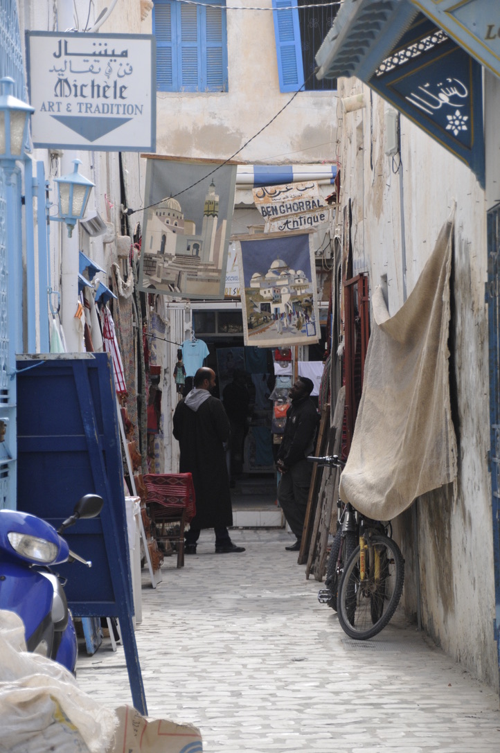This morning just after breakfast, we headed out for the day.. starting at the Homut Souk (the oldest neighborhood in Djerba, which includes the typical shopping area or “souk”).. It’s about 7km from the area where we are staying, so we drove. As we looked for parking, and were successful, we uncovered another little scam or effort to get tourists to trust someone to show them around and be a guide (Fortunately we did not buy the story.. since we had heard the same thing in Tunis and then we heard it twice more today.)… “I work at your hotel; Oh you don’t recognize me? That’s because I’m wearing a cap, see”… and then the guy knows “great shops” for you to see, carpets to buy (from his brother).. and he can take care of us all day. We politely declined and again professed not to speak English too well, since we are Finns (to which one guy asked if Finns spoke Dutch).
