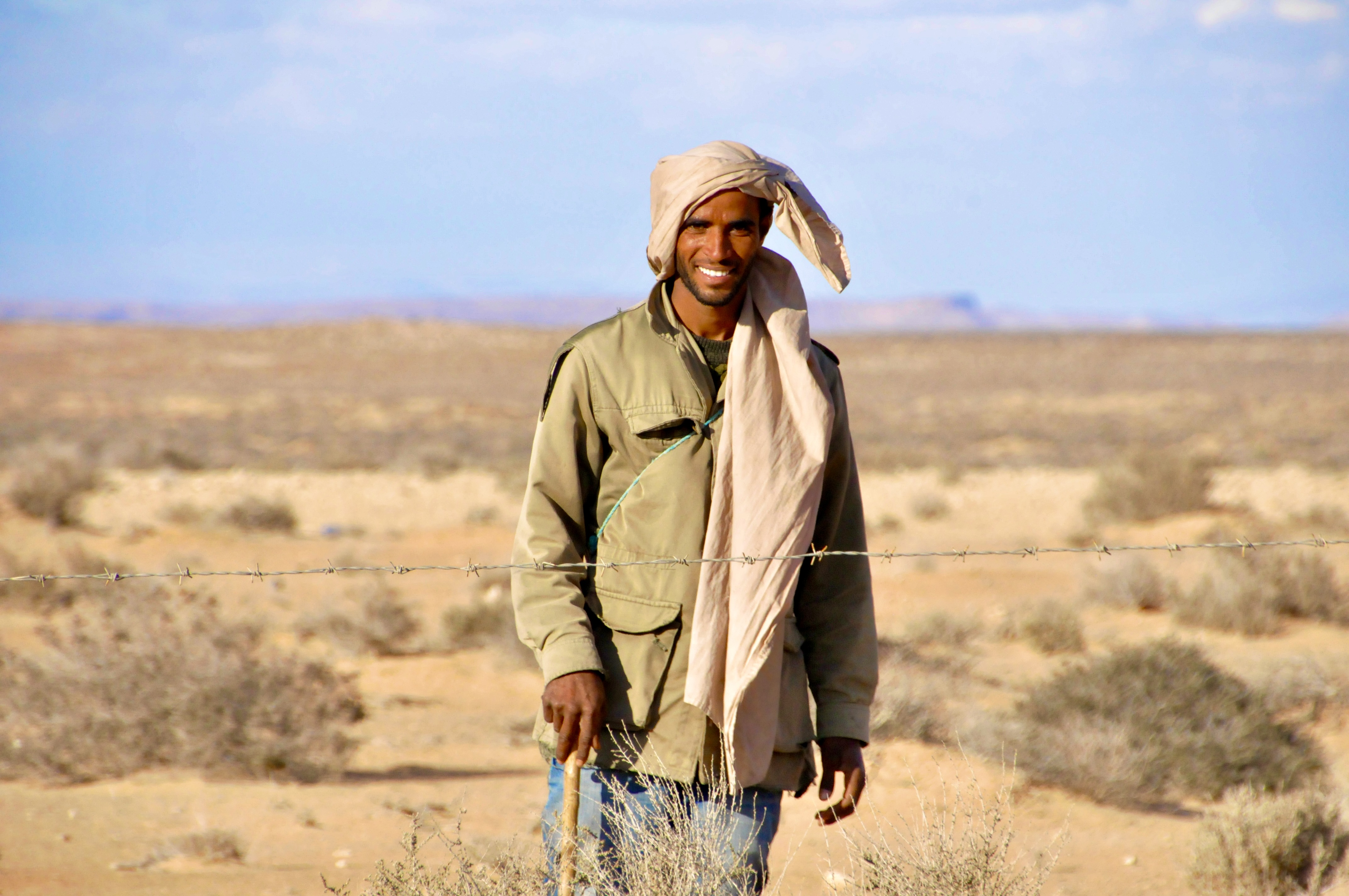 Eventually we made our way to the smaller road that would get us to Kbili when we would start our way across the Chott, the salt lake bed that we had to cross for about 45 miles. Along the way, we saw herds of camels (Naturally we got out of the car to photograph and then met the camel herder who was happy to be photographed.) The road to Kbili took us through many, many tiny villages.. where the men sat and played dominoes, smoked, and drank coffee.. and women were less visible (and when visible seemed always to be coming or going somewhere — always in small groups). We also passed a good number of “palmeries” which seem to pop up out of nowhere — hundreds of palm trees rising from the desert… We stopped a few times en route, but were determined to reach Tozeur before dark, which was a challenge.