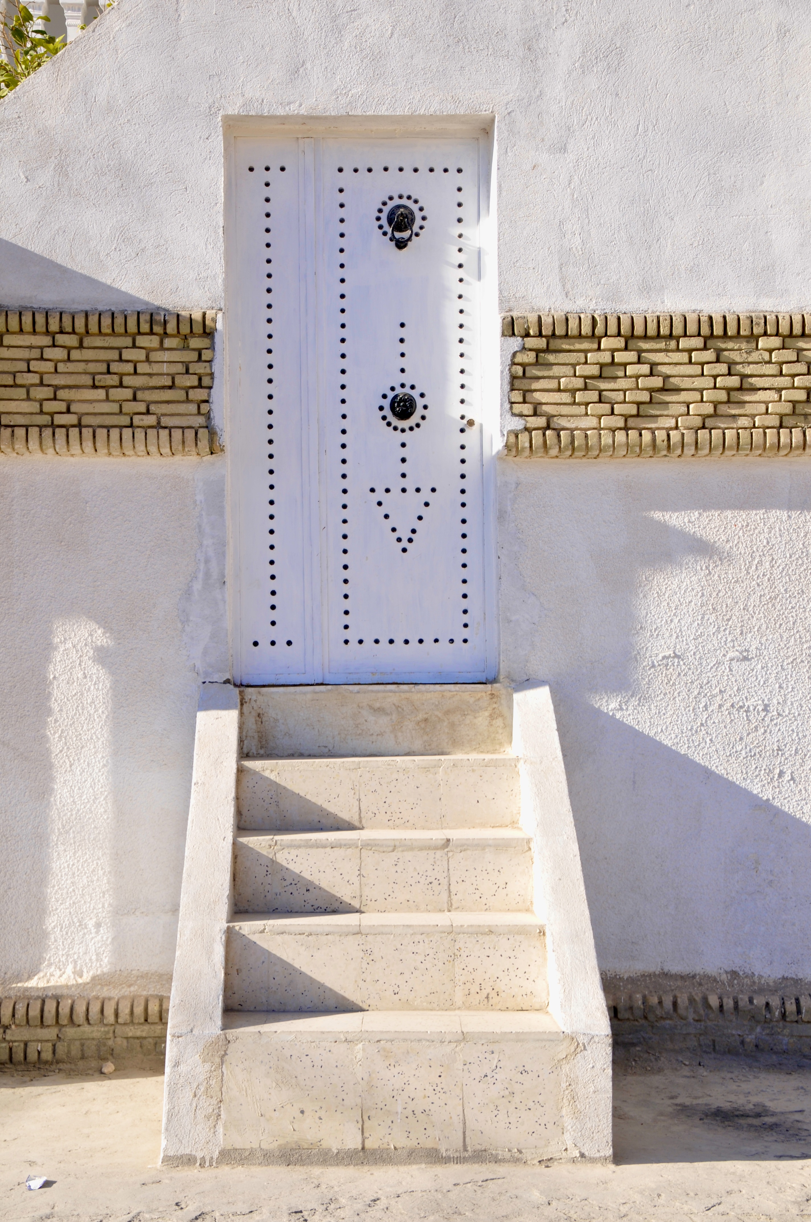 After breakfast and checking out, we roamed Tozeur. Nearly every building in the town is made from mud bricks (made I assume from the clay of the dried lake bed/chott which we drove across yesterday.) which are laid in all sorts of interesting patterns, creating bas reliefs all over town. Mike and I split up and met at the car so that we could each go our little separate ways. Thanks to cell phones and good connections we caught up with one another. And then we headed to Kairouan which is about a four hour drive from Tozeur to the north east. Flat desert landscape for most of the drive.. through tiny towns… We stopped for gas again at one of the little “informal” gas stops…
