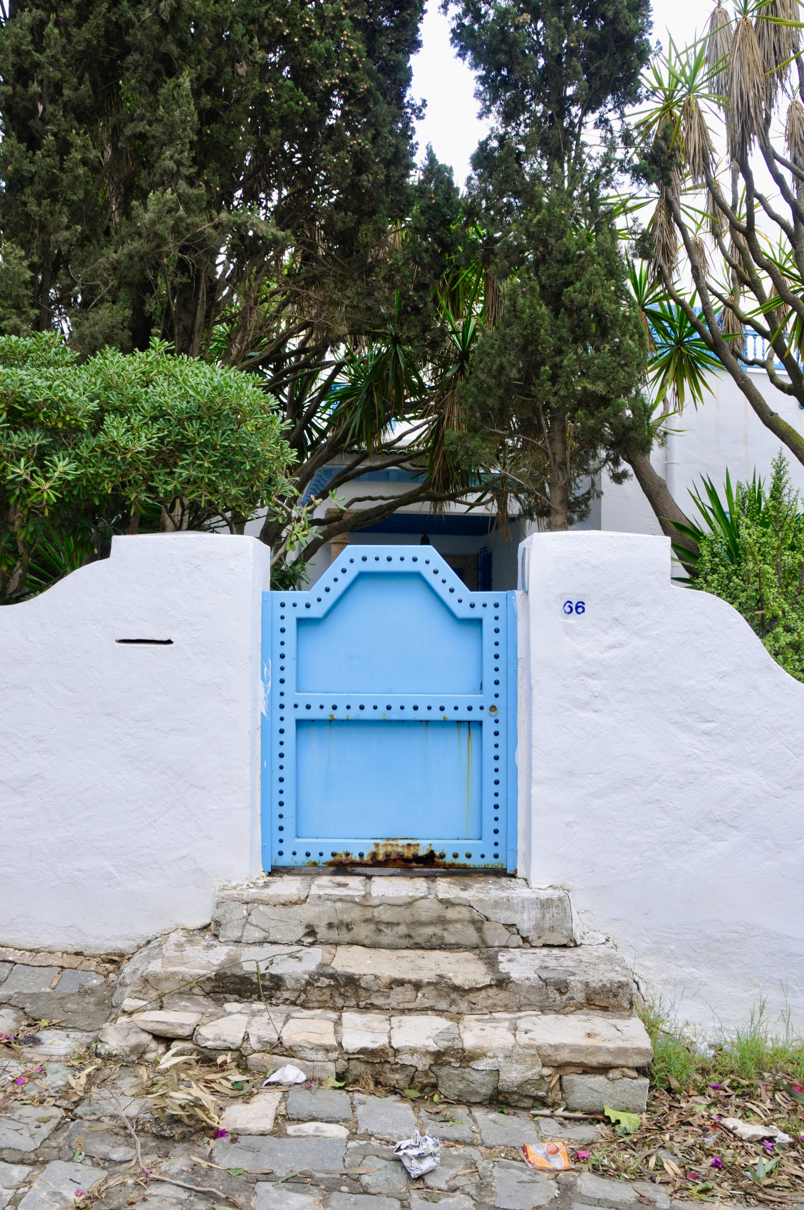 I thought this was crazy. He already had our credit card number; he’d already checked the car; why would we need to go to the office? Mostly, I didn’t want to go inside the airport with our bags because as you approach the door of the airport you start a preliminary screening with an x-ray machine and you have to lift up all your bags. You don’t need to take shoes off or put cameras on the belt… but all suitcases go on, etc. So I said we should just take a taxi and leave it all alone. Mike thought we should “do as we were told.” Anyway, we headed to the taxi stand (where we were ceremoniously surrounded by about 7 “helpers” who all wanted to help us “select” a “really good taxi.” We hopped in the first one and got to Sidi Bou Said, which even in the rain is very special. We are hoping it clears up tomorrow and we have some sun. We fully expected the Europcar guy to search for us or at the very least to call us (since he has my cell phone number). But we haven’t heard anything. We’ll see what the Europcar charge looks like on the Visa bill.