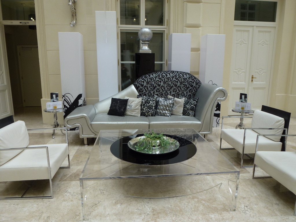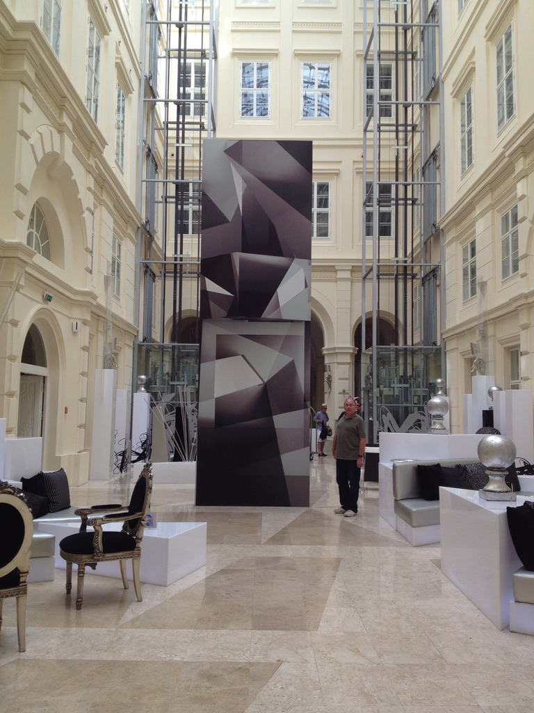 It’s a landmark building in the center of Brno, built in the middle of the 19th century and the original idea was to create a residential building with different sized rooms and a sophisticated system of staircases. The façade looks like a palace but the inside has a Romantic style .. but the recent interior renovation to turn it into a hotel appears to have been done by the brother or sister of a bordello designer in France!… more upscale, but back to the silver and black… and glass lamps… and all kinds of wallpaper… Not exactly a Fern and Mike design, but everyone is friendly and the location is fantastic..