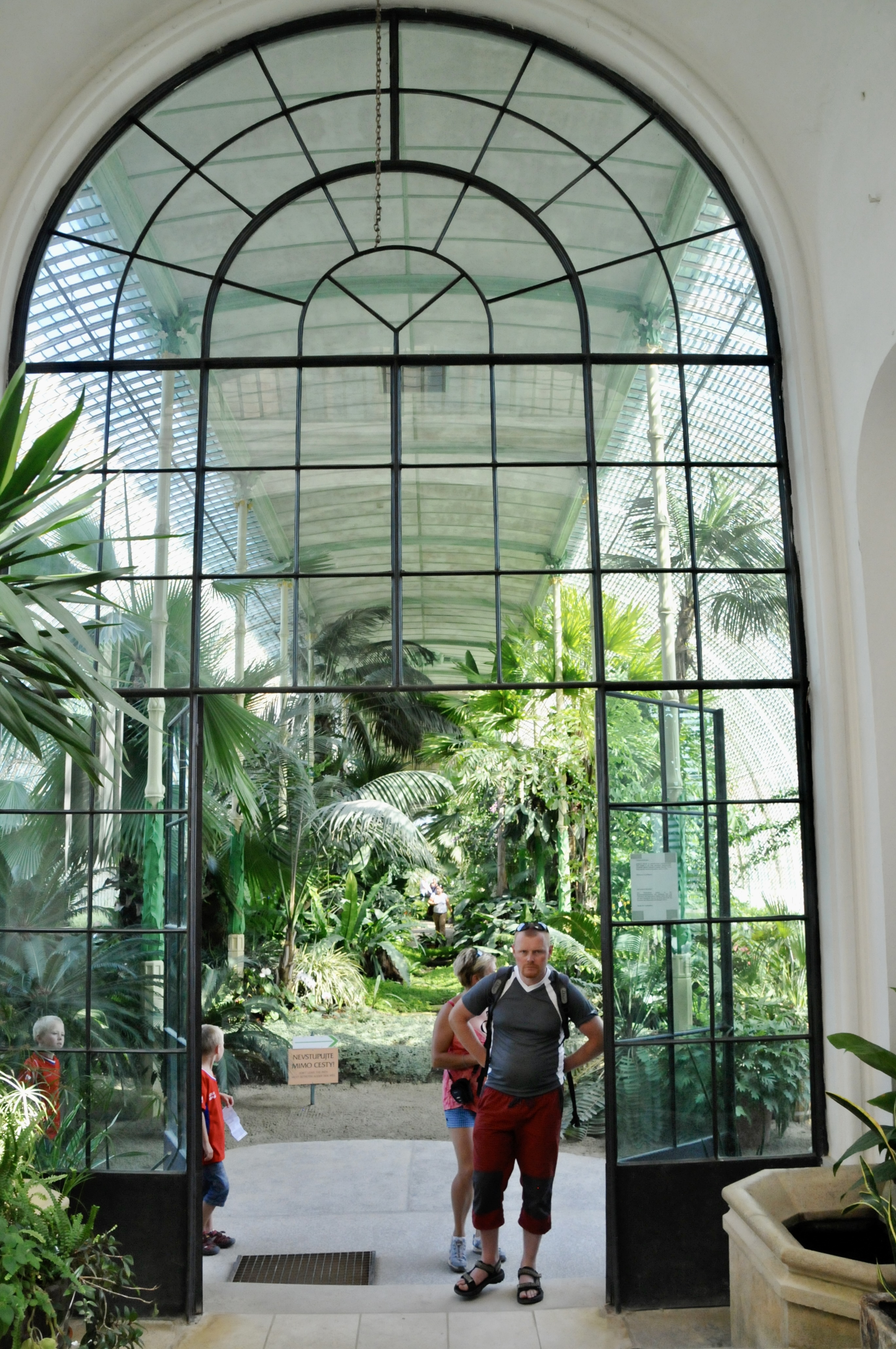 From the Tugendaht House, we drove with Jan and Jarek to Lednice-Valtice another UNESCO heritage area in southern Moravia. Again, the treasure of the wealthy — now in public hands.. It’s the largest park in the country. Apparently Lednice was owned by the House of Liechtenstein since the 13th century. The palace was first a Renaissance villa, but in the 17th century it became one of the summer residences of the Prince of Liechtenstein. In the mid-1800s, it was rebuilt in a Neo-Gothic style. The park that surrounds the house is laid out in an English garden style… and has everything including a minaret (supposedly the tallest outside of the Muslim world at the time it was constructed in the very early 1800s), and an amazing greenhouse (which Jafek says was the first greenhouse in Central Europe)… and then we drove to a wine growing area in Moravia and walked up a hill for a view of Austria. We remembered this walk up the hill many years ago with Lallin, because at that time with travel out of the Eastern Bloc into any Western countries severely restricted… going up the hill to get a view of a western country was about as close as one got to “traveling.”