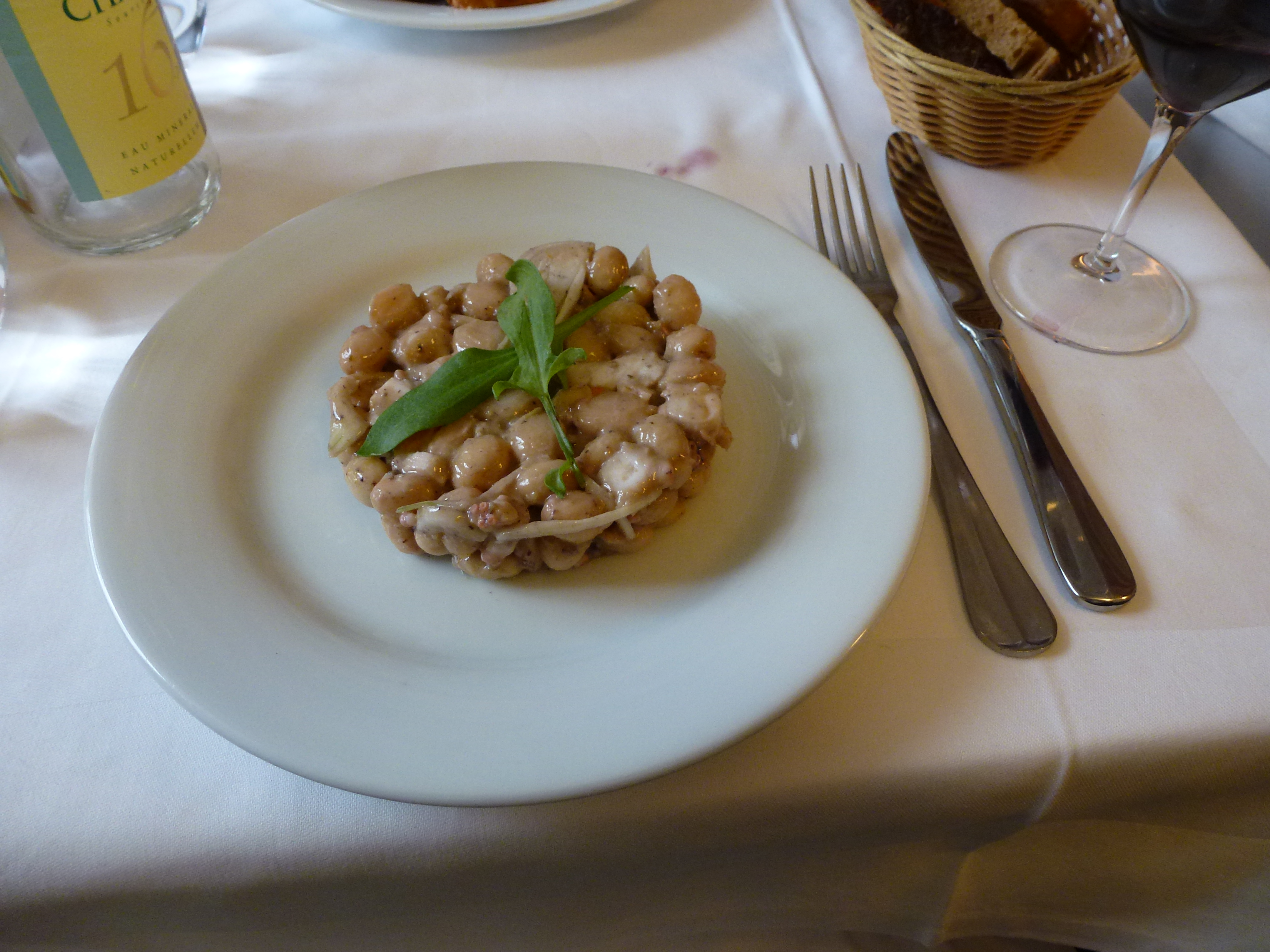 For the foodies — I had the salmon carpaccio for a starter, followed by turbot sitting on spinach… and ended the meal with some shared deserts. Mike stuck with the “raw” — moving from salmon carpaccio to beef tartare…