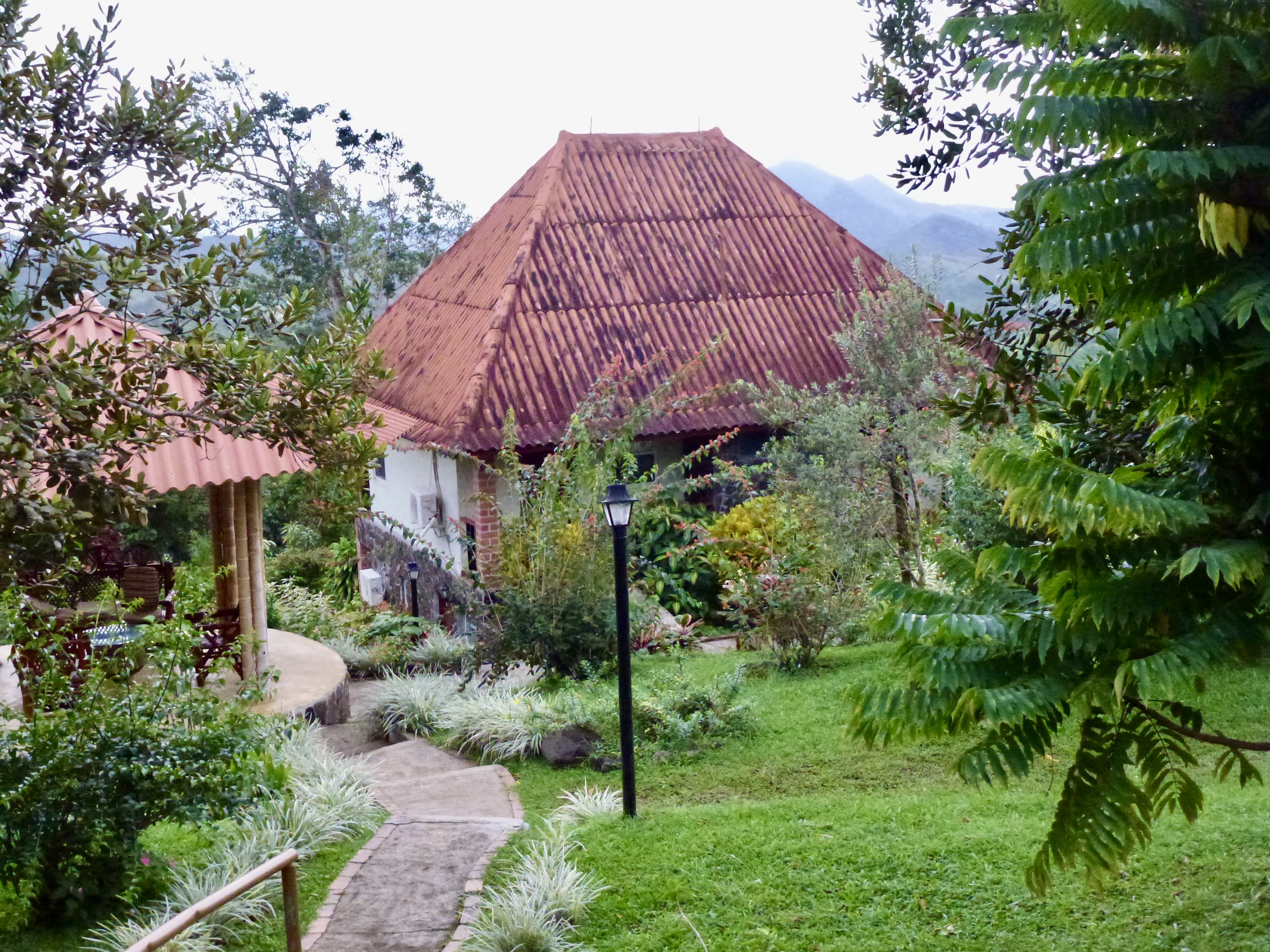 Cerro la Vieja is delightful, although for me about 24 hours will be quite enough (and in reality we will only be here about 18 hours).. It’s high in the mountains, beautiful views of dense forest .. There are 22 rooms in bunch of cottage like structures.. and a main building where the dining and ping pong take place. No phones, no TVs, no nuttin’… We have a little deck off our room with a hammock .. and it is totally pitch black at night… Actually it is incredibly pleasant and a nice respite from Panama City and from the drive. Mike says he’s in heaven and can consider this for his retirement location (but he says that every time we travel anywhere).