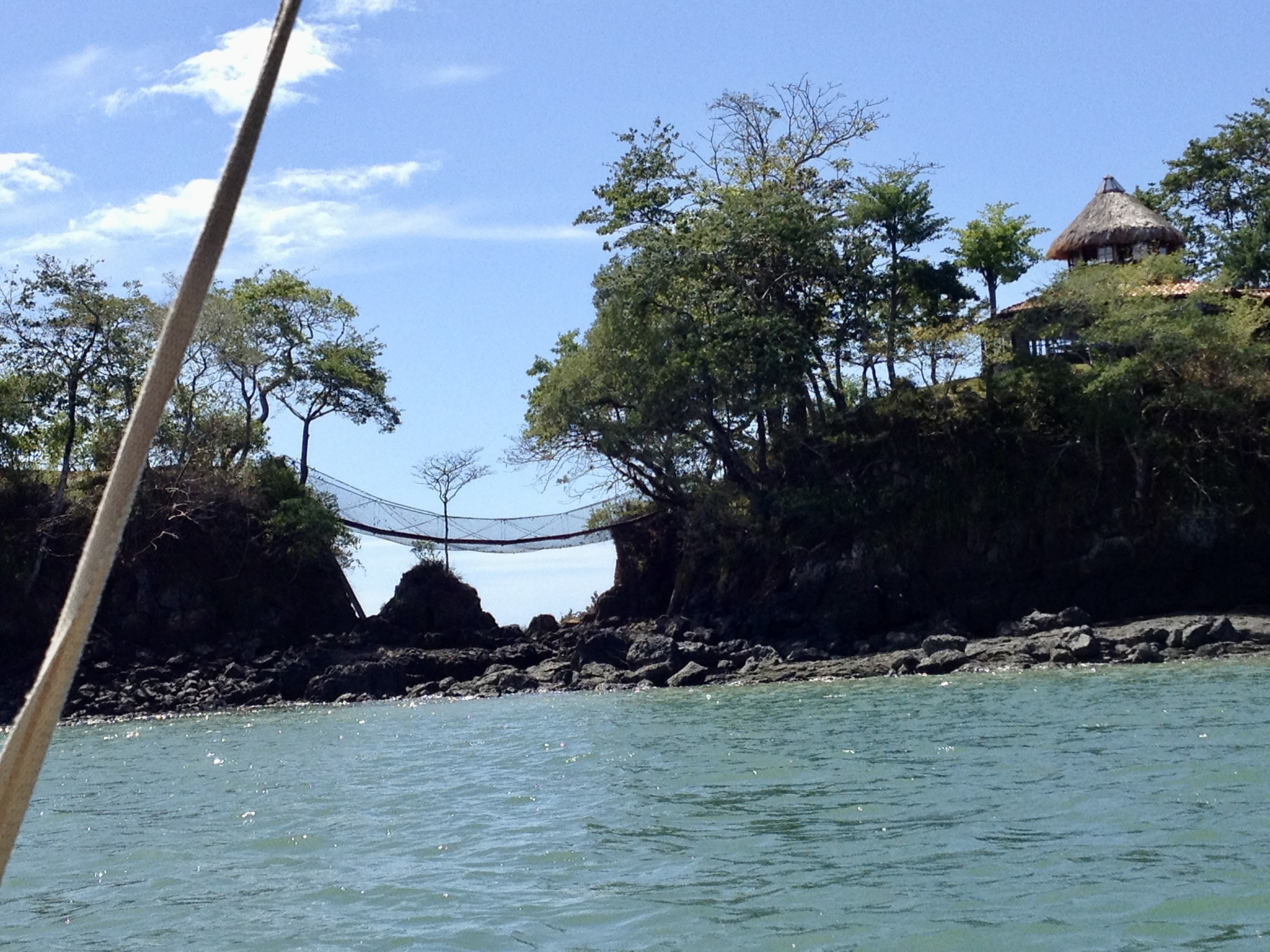 Dinner last night was quite good — salmon tartare, fish filet with vegetables cooked in a wok for me and braised pork in wine for Mike, mango pudding. Tonight’s special drink was called coco volcano… very tasty.. although a bit too milk shakey for me.. Ray (the bartender — a local who comes from David, Panama – where we head tomorrow) likes to design different drinks each night..