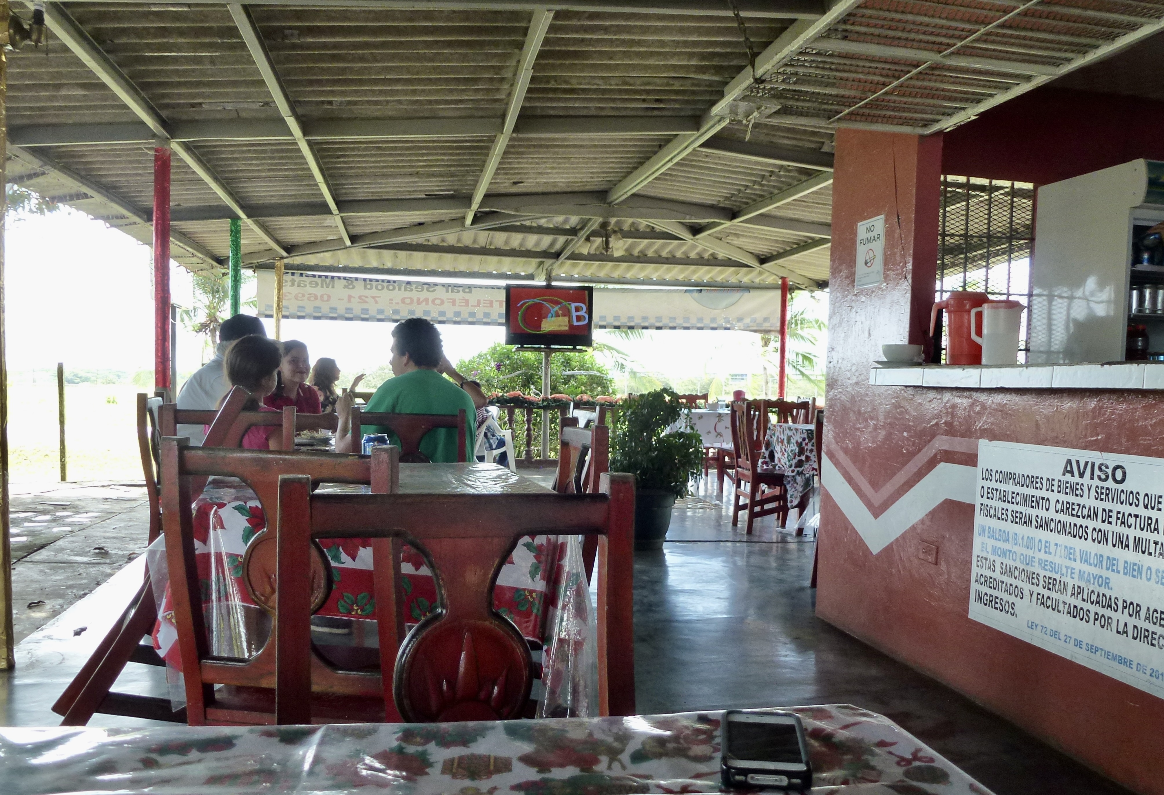 OK.. so arrived in Boca Chica.. walked up the ramp and into “town” and to the car… Car in fine shape.. And headed to David where we hoped to get some lunch.. and then head to the Airport. The route is fairly simple.. but again, no signs.. not even when the road from Boca Chica hits the Pan-American Highway… unbelievable.. Didn’t really get lost; tried to locate a restaurant called Cuatro (4).. which we did, but it was closed… so we meandered abit around town and stumbled on a little fish shack… Had amazingly fresh corvina (bass)… fried, of course… with rice… Rest of the people seemed pleasantly surprised to see foreigners in this little place… They laughed as we attempted to translate the menu — at one time using the iPad…