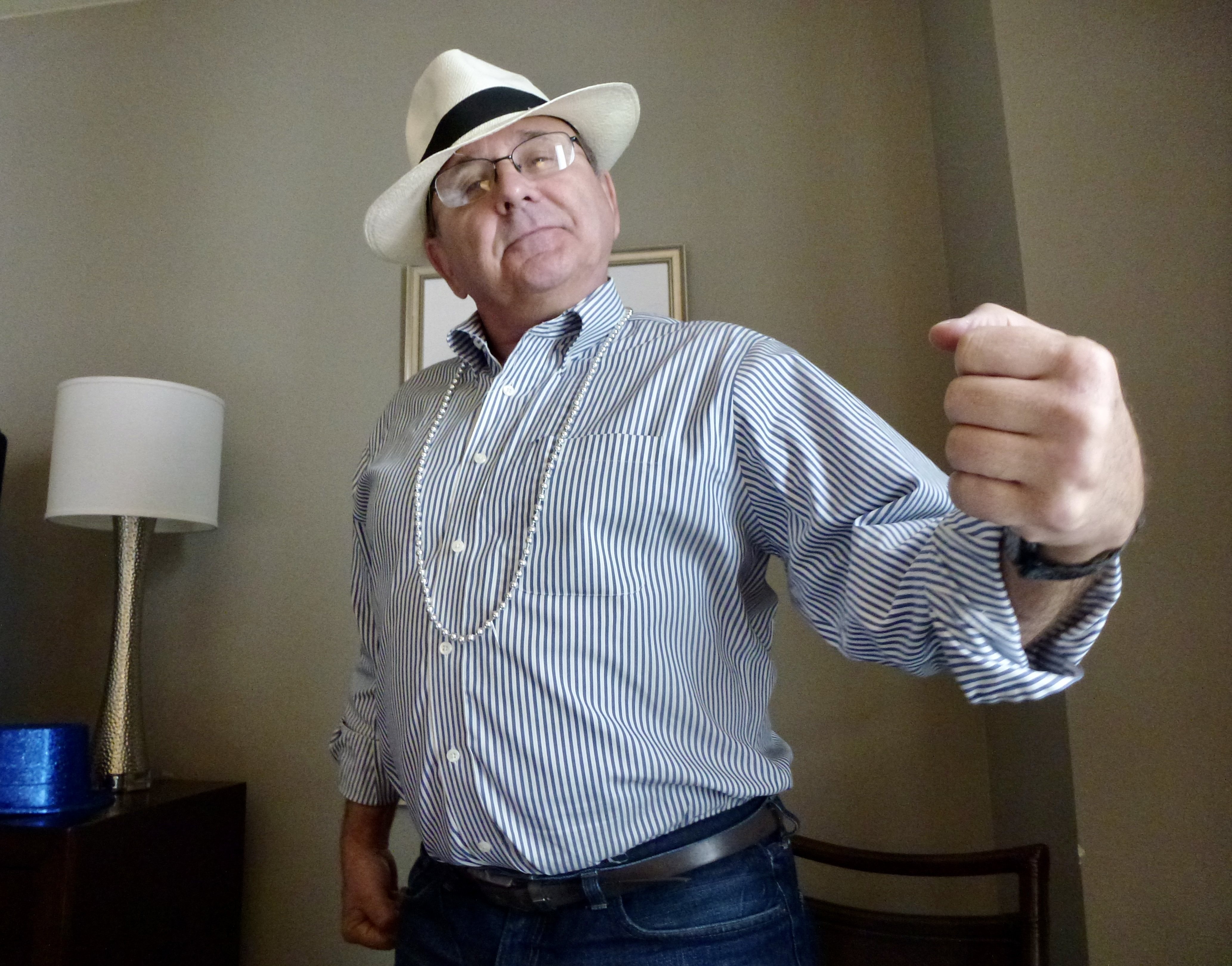 By the way, Mike is now sporting a panama hat!! And the New Years’ Eve beads.
