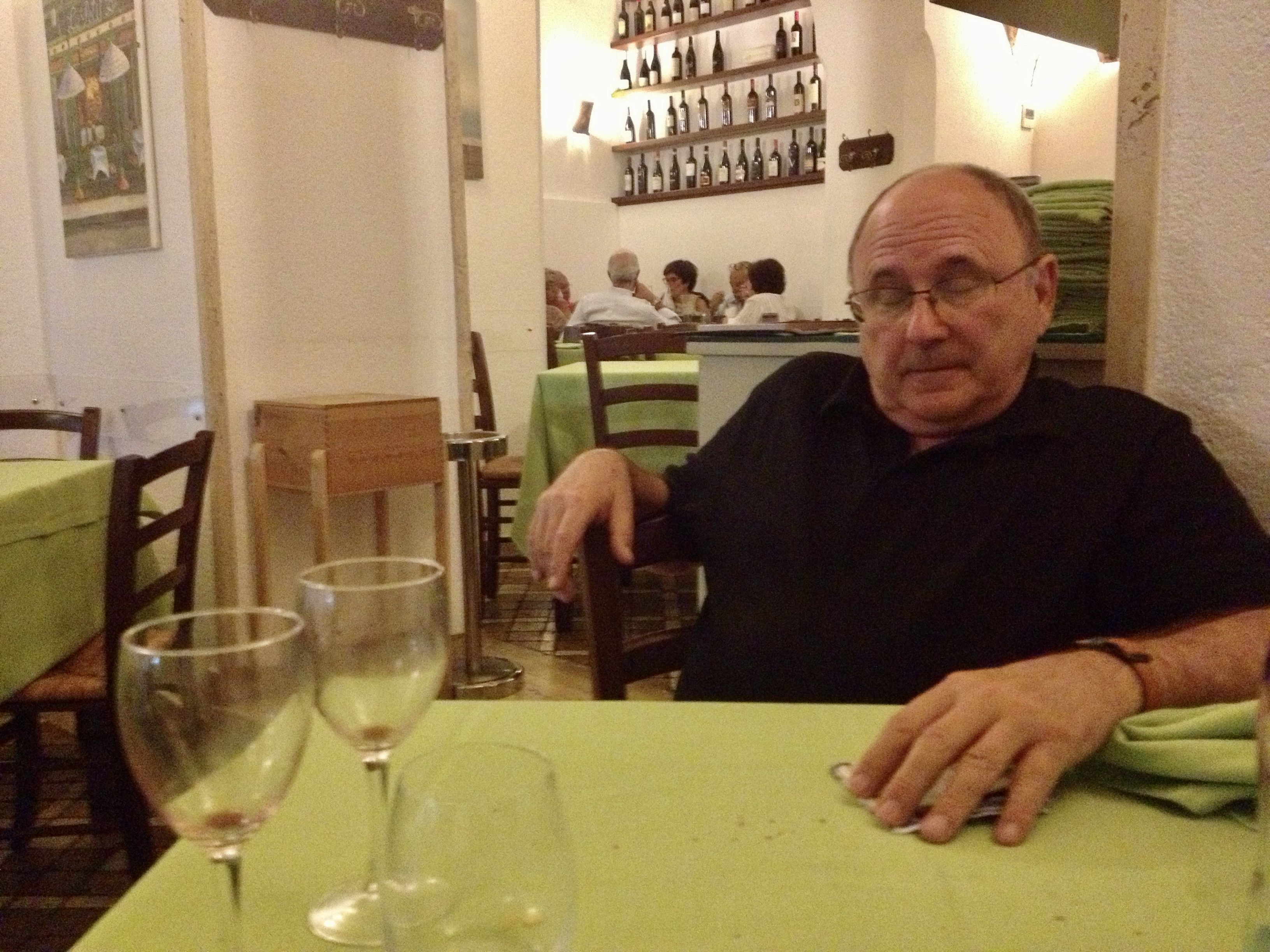 Arrived at the Hotel Excelsior which is a bit tired and could use a little bit of attention, but otherwise fine, and we think fairly well located. We’d been up about 27 hours by the time we got here (at 7:30 pm)… checked in, showered, put stuff away — and then walked about 5 blocks to a small ristorante recommended by the hotel… I think it was called Le Volte. Food was fine.. we couldn’t really read the menu and it was a local place so no translated versions.. but we did fine (especially since we are big devotees of Italian food) except for those parts of the menu that were very descriptive and who knows what that said…