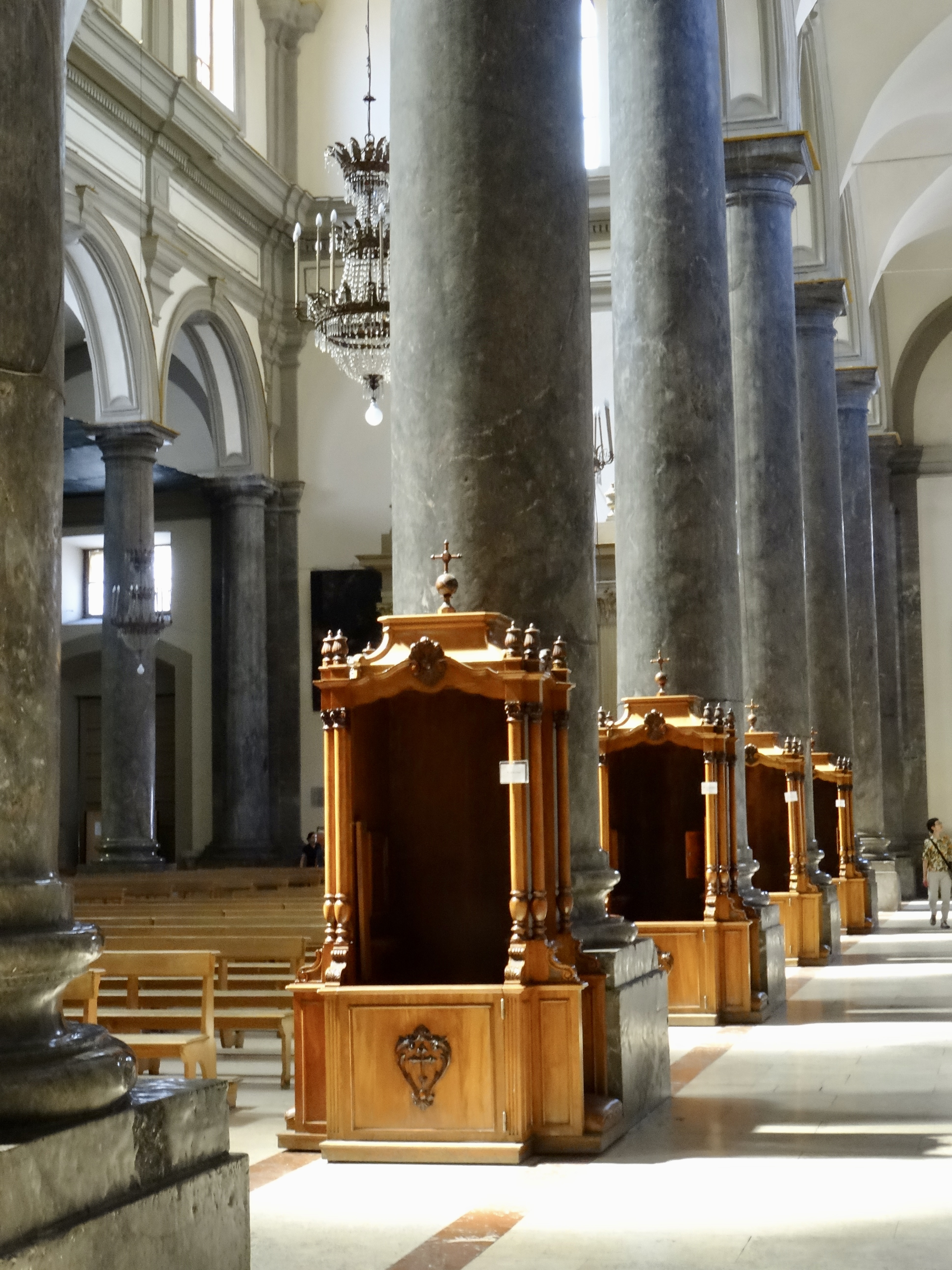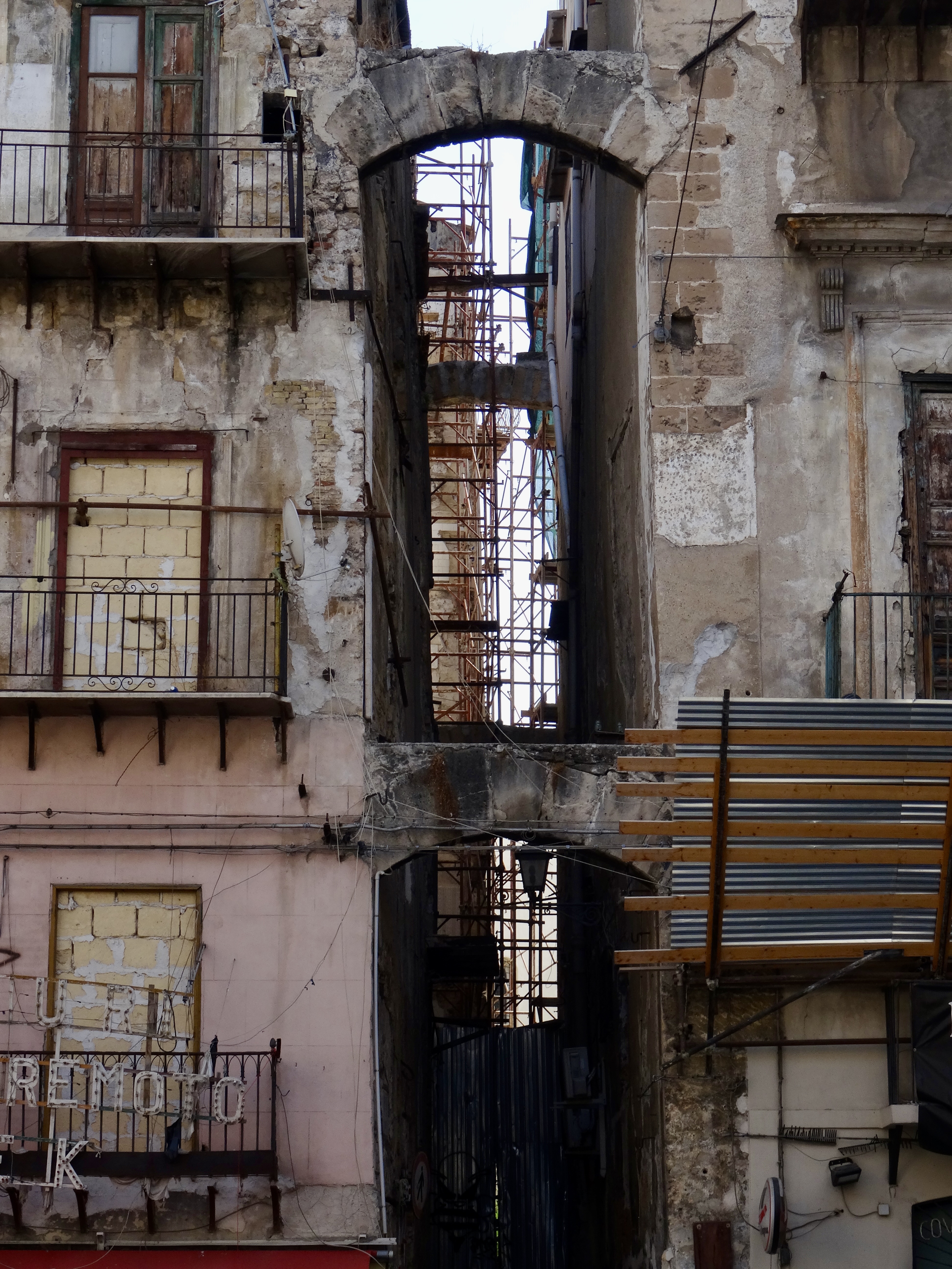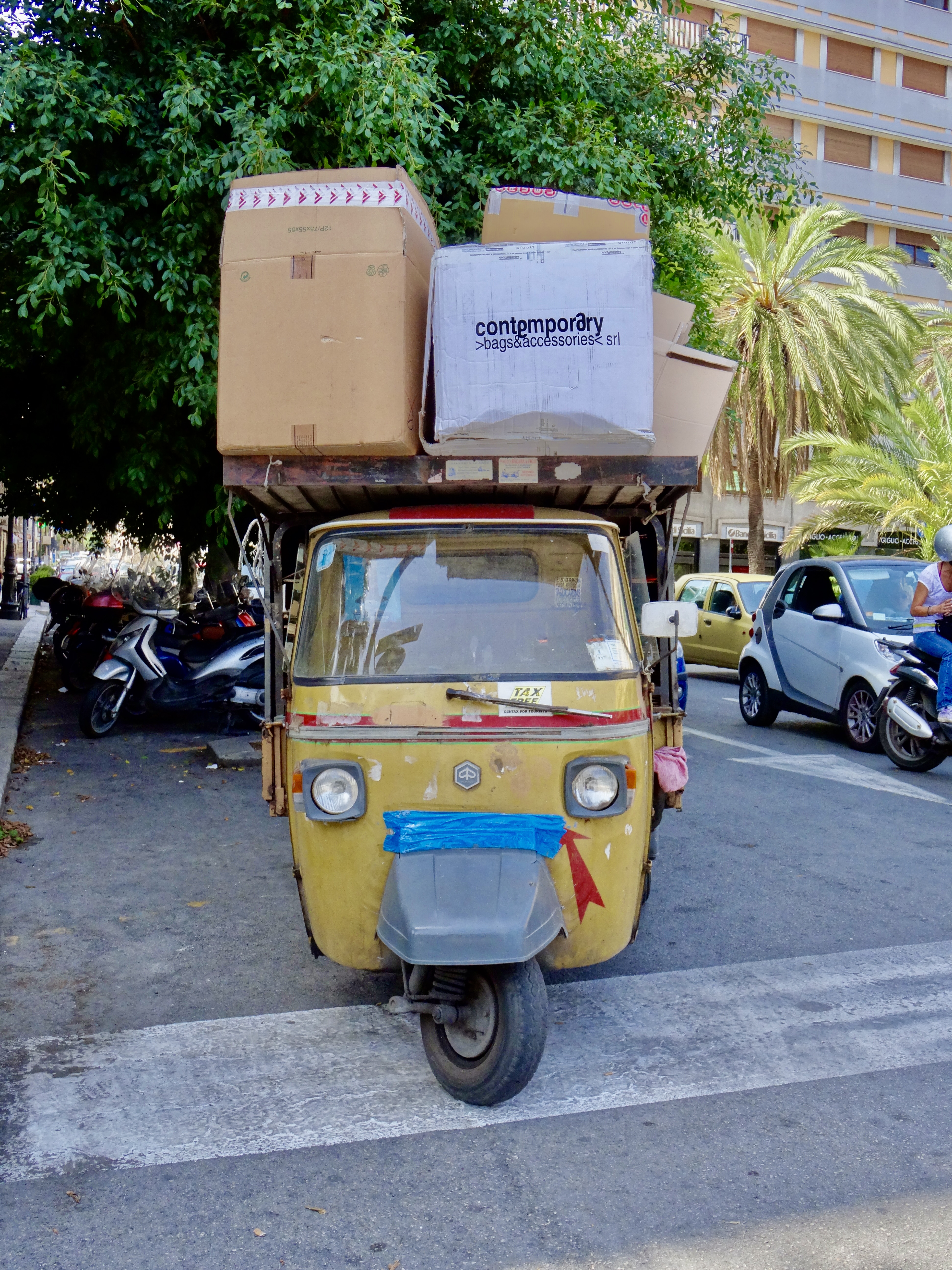 We headed out at about 4 when there was a slight breeze in the air. I had researched a list of craft places which became the goal. Naturally, no matter how good the map, we could never find these places which were all in tiny alleyways.. but the goal was good as it took us through a variety of neighborhoods – some upscale and some pretty marginal. I’d say there’s easily one church for every five people here in Sicily.. but most are in great need of repair, closed, with cars parked nearly on their stairways and markets at the entrances. The big grand churches all function, but these smaller ones are like remains from another era.