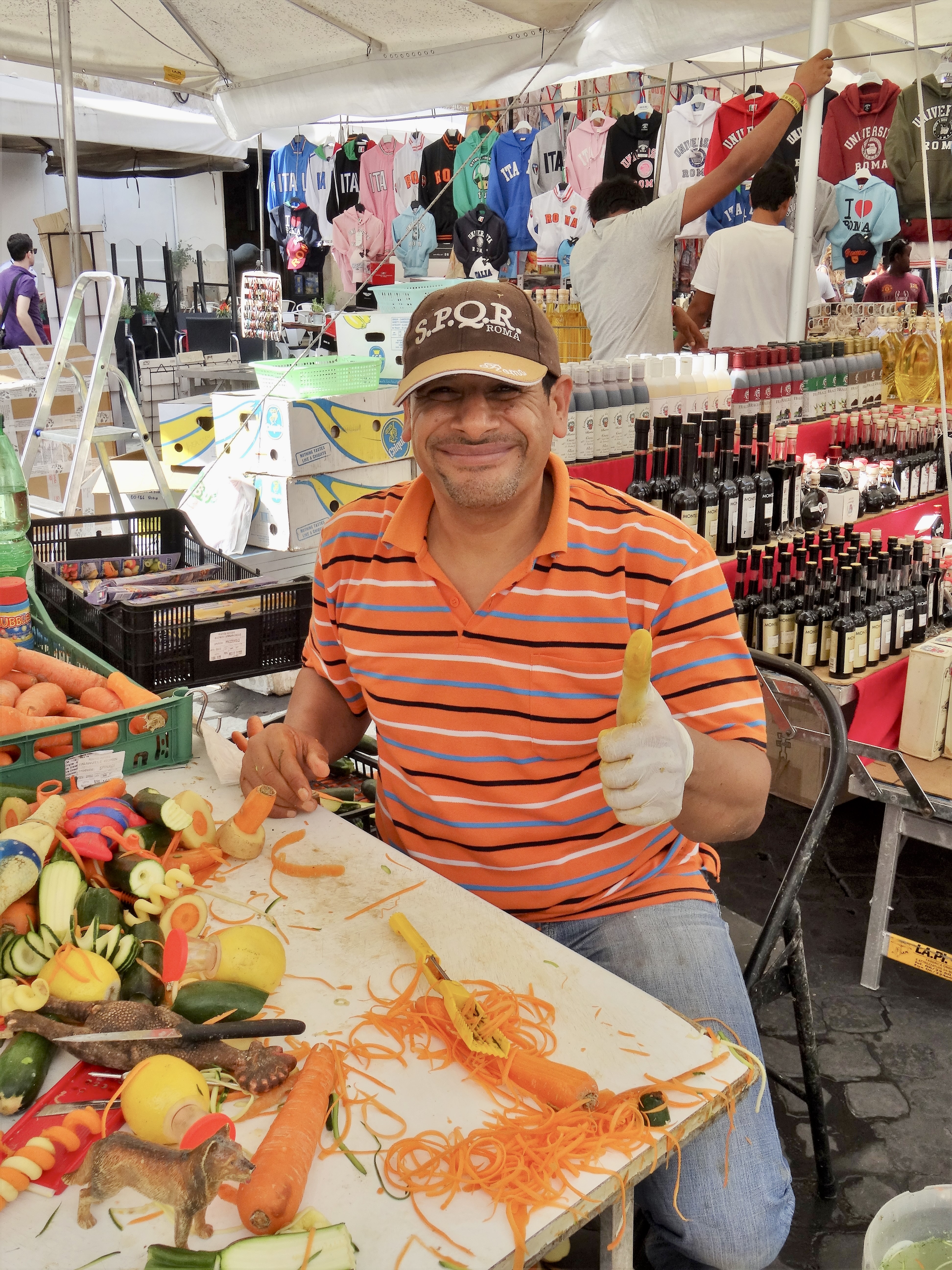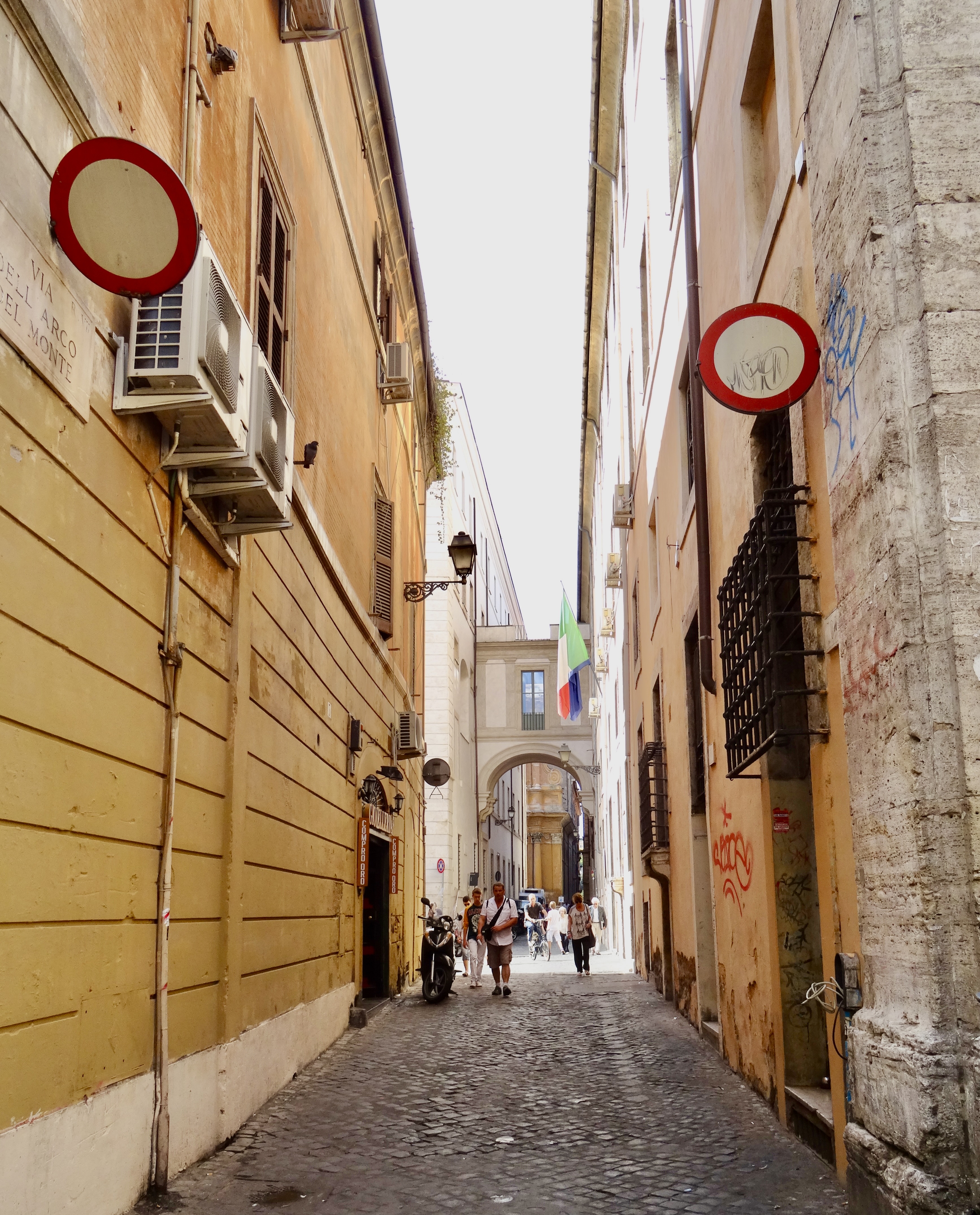 Started out after breakfast with taxi to Campo di Fiori market (We have to take taxis everywhere because the Lord Byron Hotel is not in the center and not really close to a Metro station. We are not accustomed to being in hotels out of the center, but Mike’s brother and sister-in-law made the reservations. We could probably walk about a mile to a station, but it’s very very hot and humid… (again, not our usual month to travel.) We all strolled separately through the market arranging to meet up an hour later. I strolled quickly through the market and then on streets throughout the neighborhood… in and out of tiny alleyways.. and checking out some shops (but believe it or not, purchased nothing).