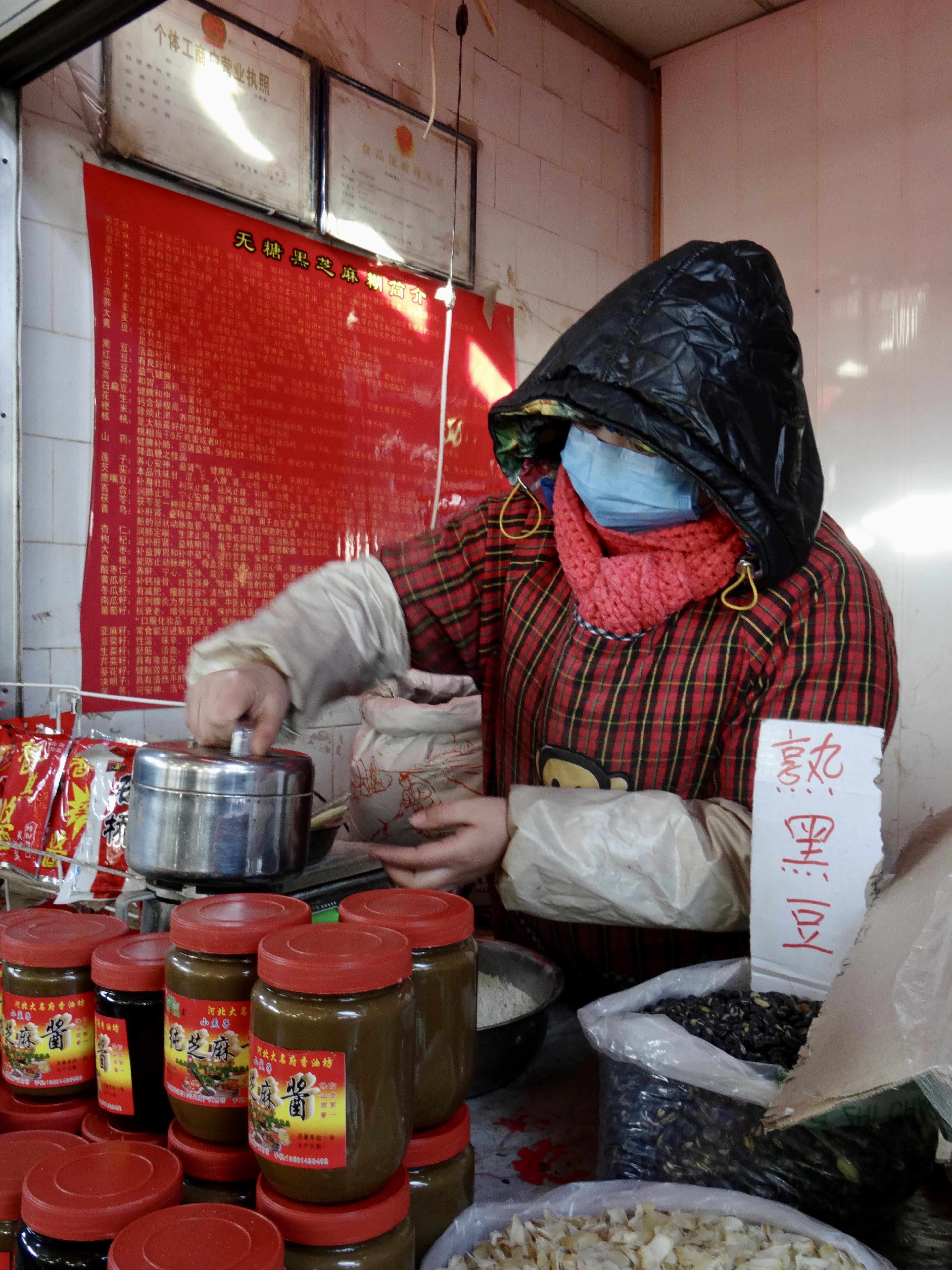 Anyway either out of frustration or luck or because this happens often, the woman pushed some buttons and off we went. It turns out that the train station is literally under the temple. We opted to walk around this new area instead of visiting the temple. It’s a somewhat yuppified hutong area, but many of the hutong buildings are fairly new or so over-renovated that it’s hard to know. We had seen this in Shanghai some years ago — new buildings attempting to create the feeling of older buildings. Very upscale restaurants and boutiques. We then took the train back to Goulou — experienced and without any mis-steps.