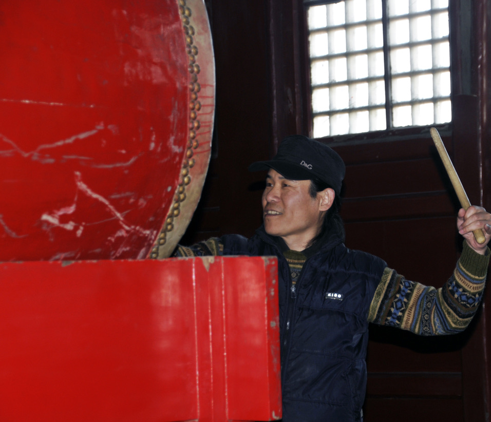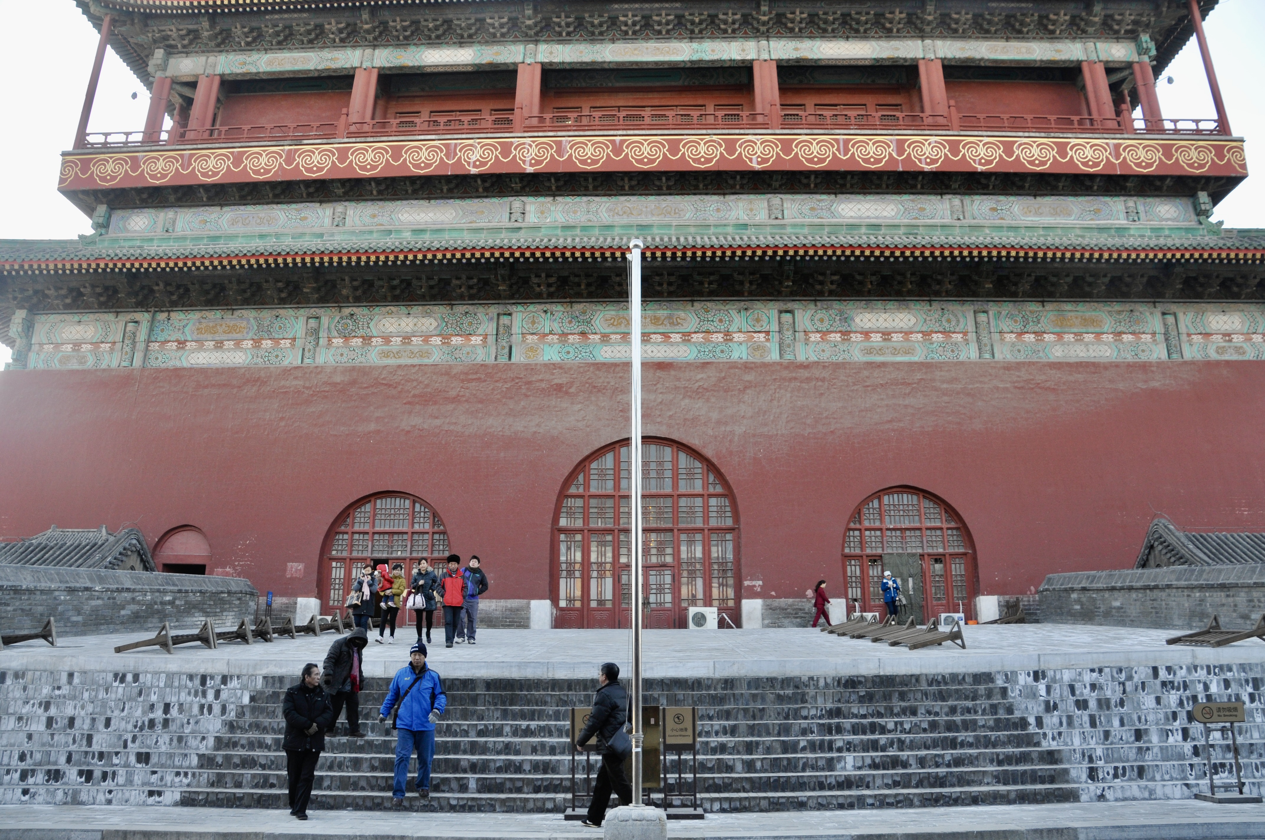 We headed to the Bell Tower and the Drum Tower. Paid for our tickets which were checked by about four people at different points, and attempted to walk through the “security x-ray machine” but no one was there so we just kept going. Climbed the very steep (no landing) 60 stairs with 12 ” risers followed by 10 very steep stairs.. all in all equivalent to walking up and down a 7 story building. Unfortunately the view from the top was not very good for photography since they have a lot of fences and it’s impossible to really see much through the lens. But we got to the top in time to catch part of the drum performance. Mike then climbed to the top of the Bell Tower, but I opted to walk the streets. Good decision, since the view was about the same, I heard.