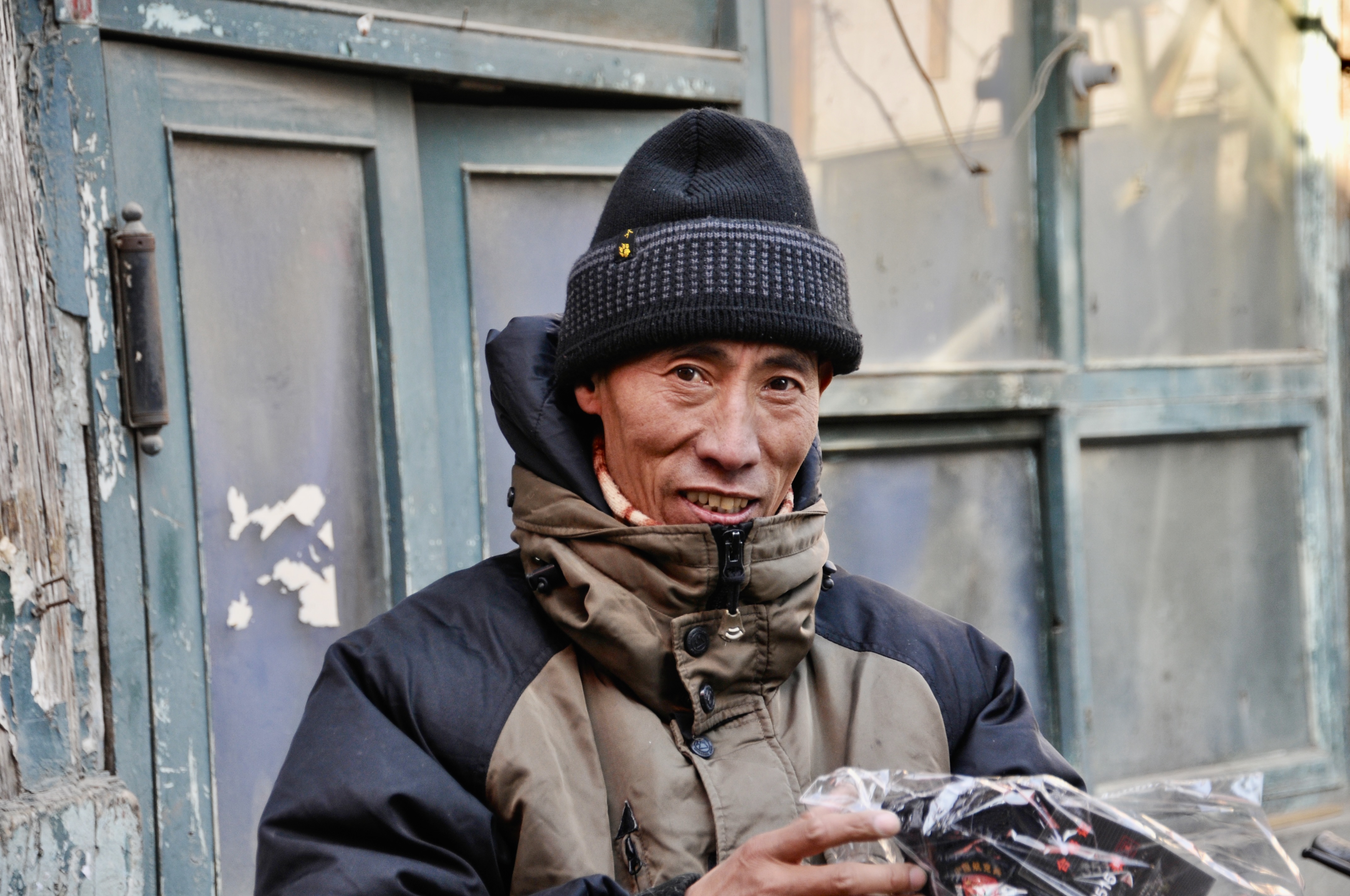 After a very light breakfast (definitely didn’t eat enough for our club membership fee), we headed to what is known as “old Beijing” — Luilichang Street. Started out on a main thoroughfare and then walked down a small street, but after meandering a while we figured out that this was not “exactly” correct. I think the taxis don’t like to get caught up in the narrow hutongs so they drop you off at the edge of the neighborhood and then you’re on your own — which is probably a lot easier if you speak Chinese. Anyway, we were exposed to yet another hutong complex.. and then decided to cross the major street and see what was on that side, which we could tell housed yet another (or perhaps a continuation of the same) hutong. Most likely, the center part of this hutong was demolished to make way for the 12-lane road that now completely cuts the neighborhood in two. We walked through the maze of streets and finally asked a few people if they speak any English. Trick is to find someone young (under 30) and then they are more likely to speak English. Apparently English is now required throughout all school years.