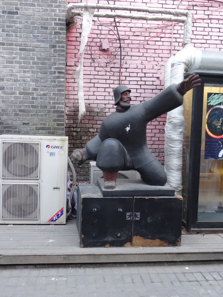 From the restaurant, we took another taxi (very cheap) to something called the 798 Art District, which turned out to be way further than we thought.. so we got to see a lot of the city from the window of the taxi. The District is a little like Soho in the 70s.. but quickly turning into Soho of the 90s. In any case both the morning in old Beijing and the afternoon at 798 were easy walking areas and away from the 12-lanes of traffic. Walked around a bit, bought a few funny keepsakes and then braved traffic back to downtown.