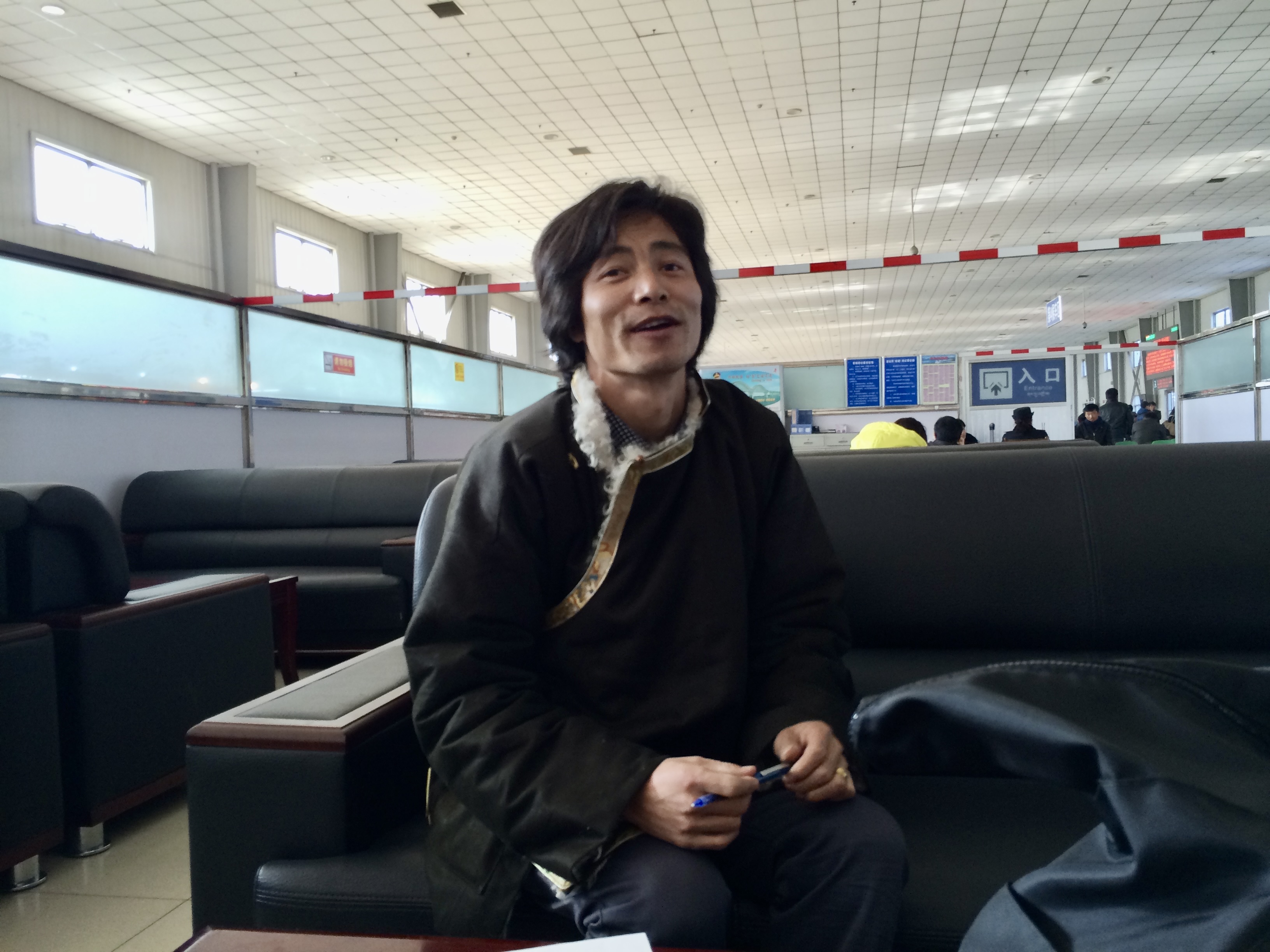 We had about 90 minutes to wait so that gave us a lot of time to chat with Bem who was surprisingly open about the Tibetan situation, his family, and himself. His parents and brother are nomadic farmers or “animal grazers” — 100 sheep, 60 yak, a few horses and dogs.. and recently a motorcycle (which he called “Tibet’s new horse”). Since his family had two sons, it is expected that one will continue the family’s work (especially since working people seem to retire at around 50) and the other son will become a monk. So Bem was destined to be a monk, but there were problems with the monastery in his village — Monks are higher status than “ordinary people,” but if you leave the monastery then you are “lower class” than ordinary people. A lot of people were leaving the monastery at that time (he didn’t explain why) so his parents protected him and helped him leave Tibet to go the university in Xining. There, he studied Tibetan language and history and is qualified to be a teacher. But he decided to become a guide. He’s amazingly warm and friendly so it was probably a good idea to have made the link with him.