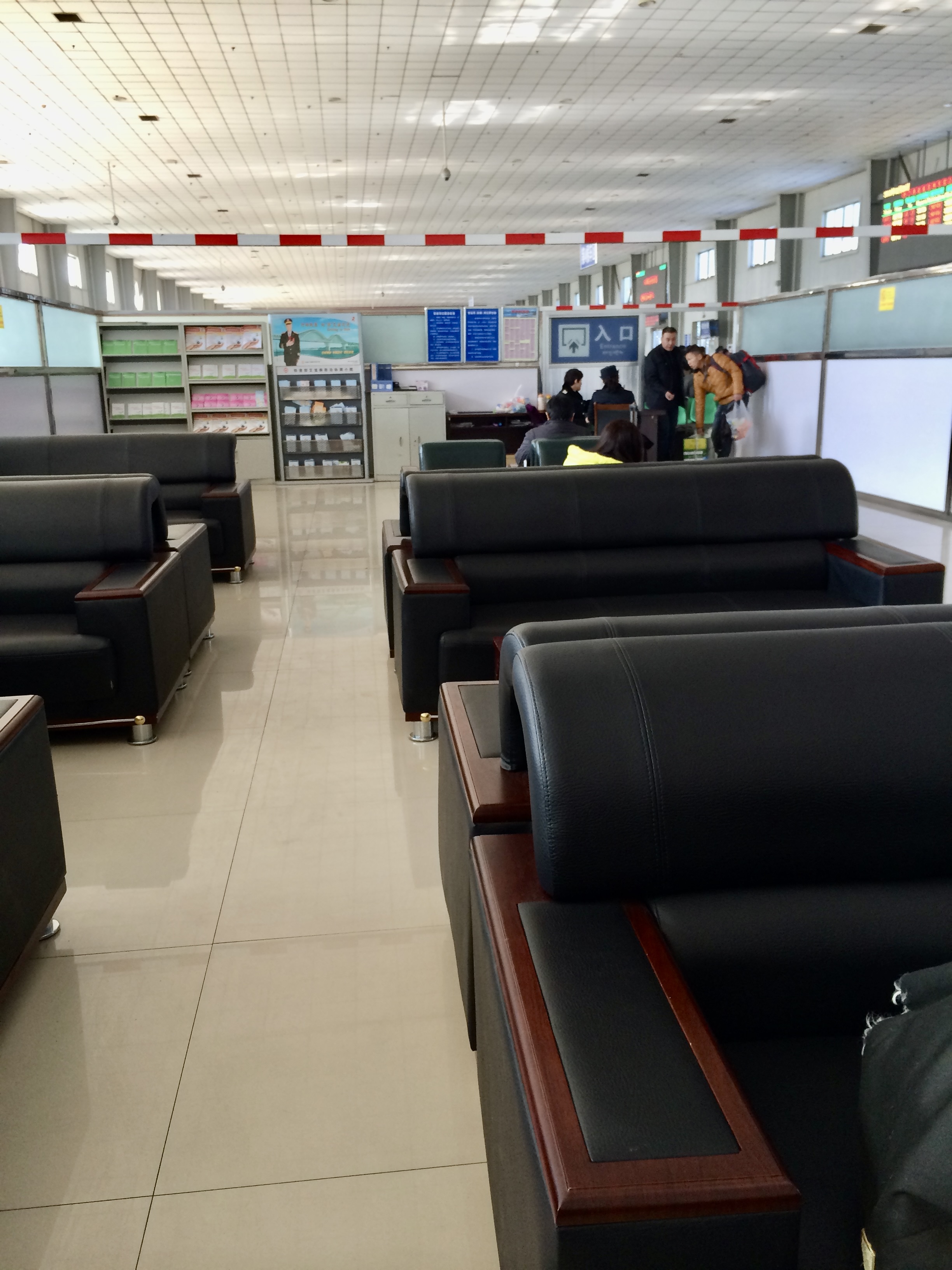 As we approached the doorway with our Tibetan Travel Permit and US Passport in hand (and the little train ticket), the guard motioned for us to step aside and he took the travel permit from us. No one seemed to care about the train ticket. And they left us holding our passports which we were happy about. They pulled over other people as well, but we couldn’t figure out the logic. Some were Tibetans, some were foreigners from other parts of China.. and us. Then a woman who walked really really fast took all those papers and motioned for everyone to follow her into a little shed which we did. When we got inside (luggage and all) everyone was going into a second room, but they told us to wait in a different room which had a few chairs. After a few minutes they motioned for us to leave and gave us the papers. who knows!