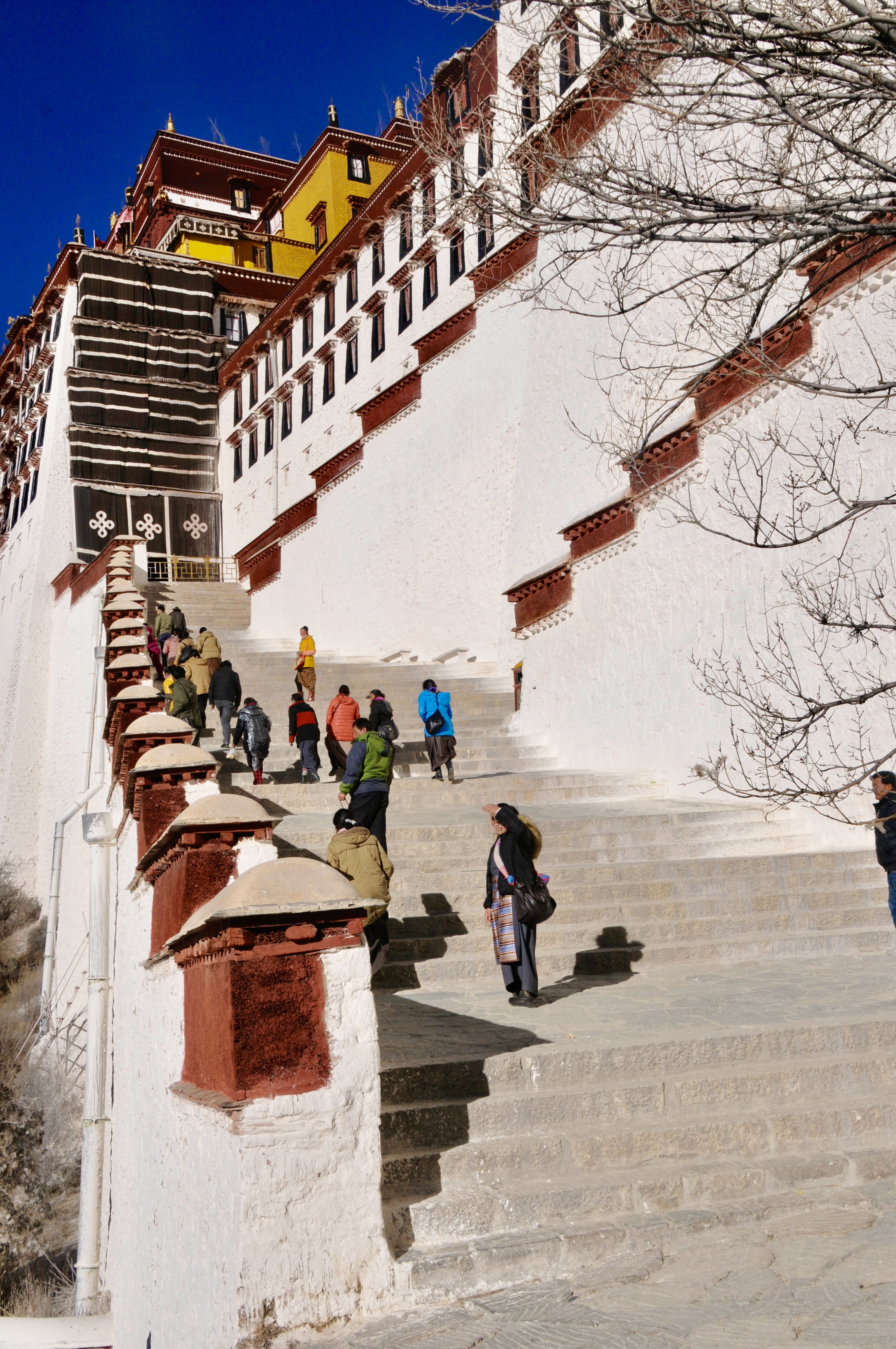 So at 10, off we went to Potola Palace — a towering structure that can be seen virtually from any spot in Lhasa. The story is that the Fifth Dalai Lama, started building the Palace in 1645 after one of his spiritual advisers said that the site was a perfect location for the seat of government — because it is situated between two monasteries and the old city of Lhasa. According to Pemba, it was built on top of the remains of an earlier fortress, from 637. Today, the Potala Palace is a museum, tended to by monks.