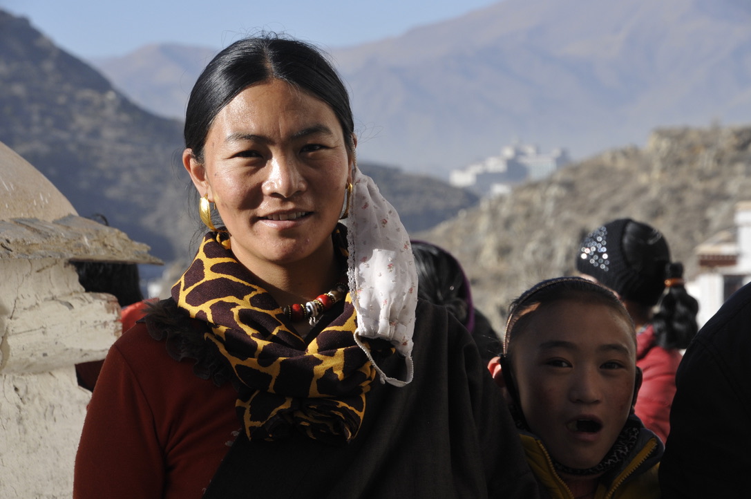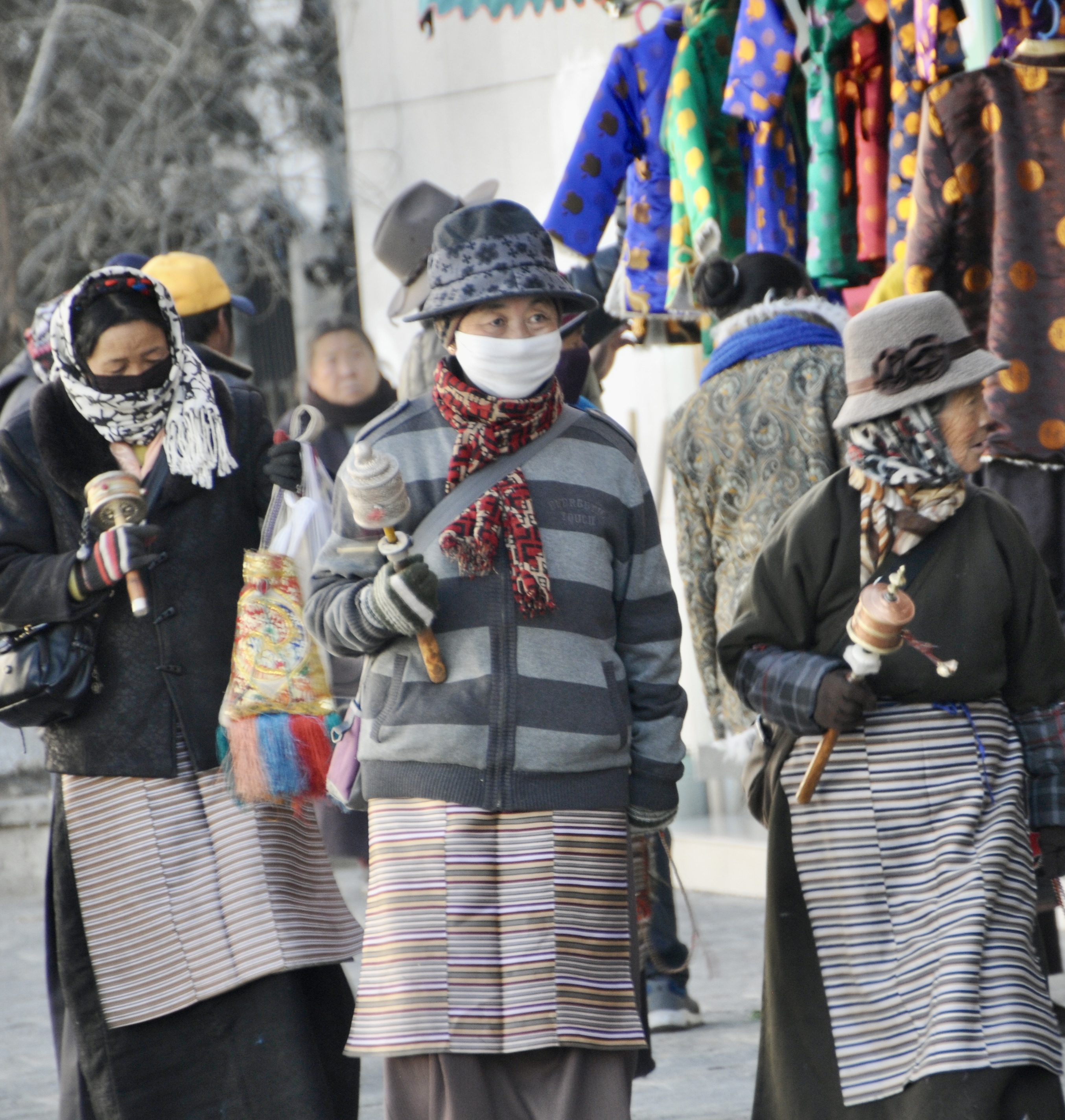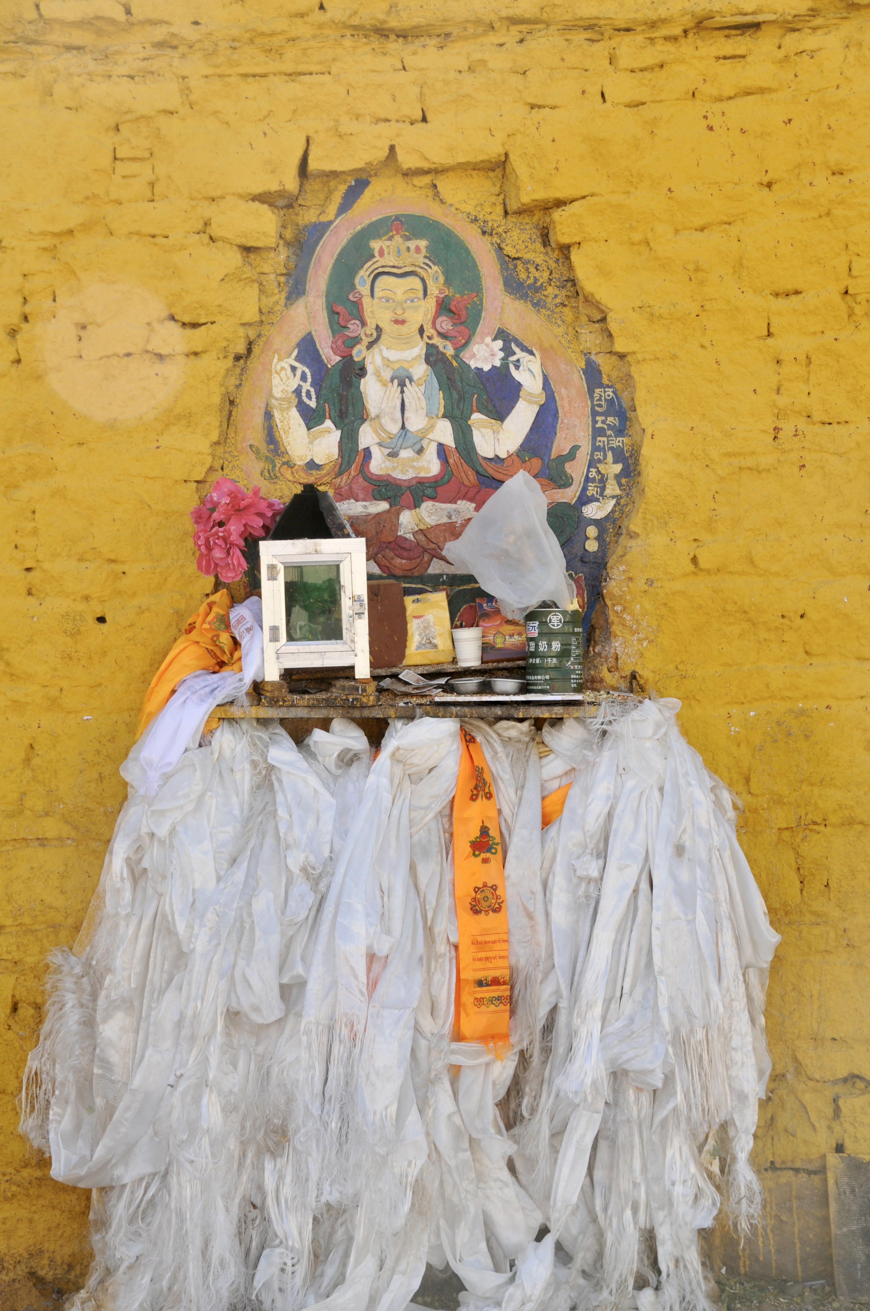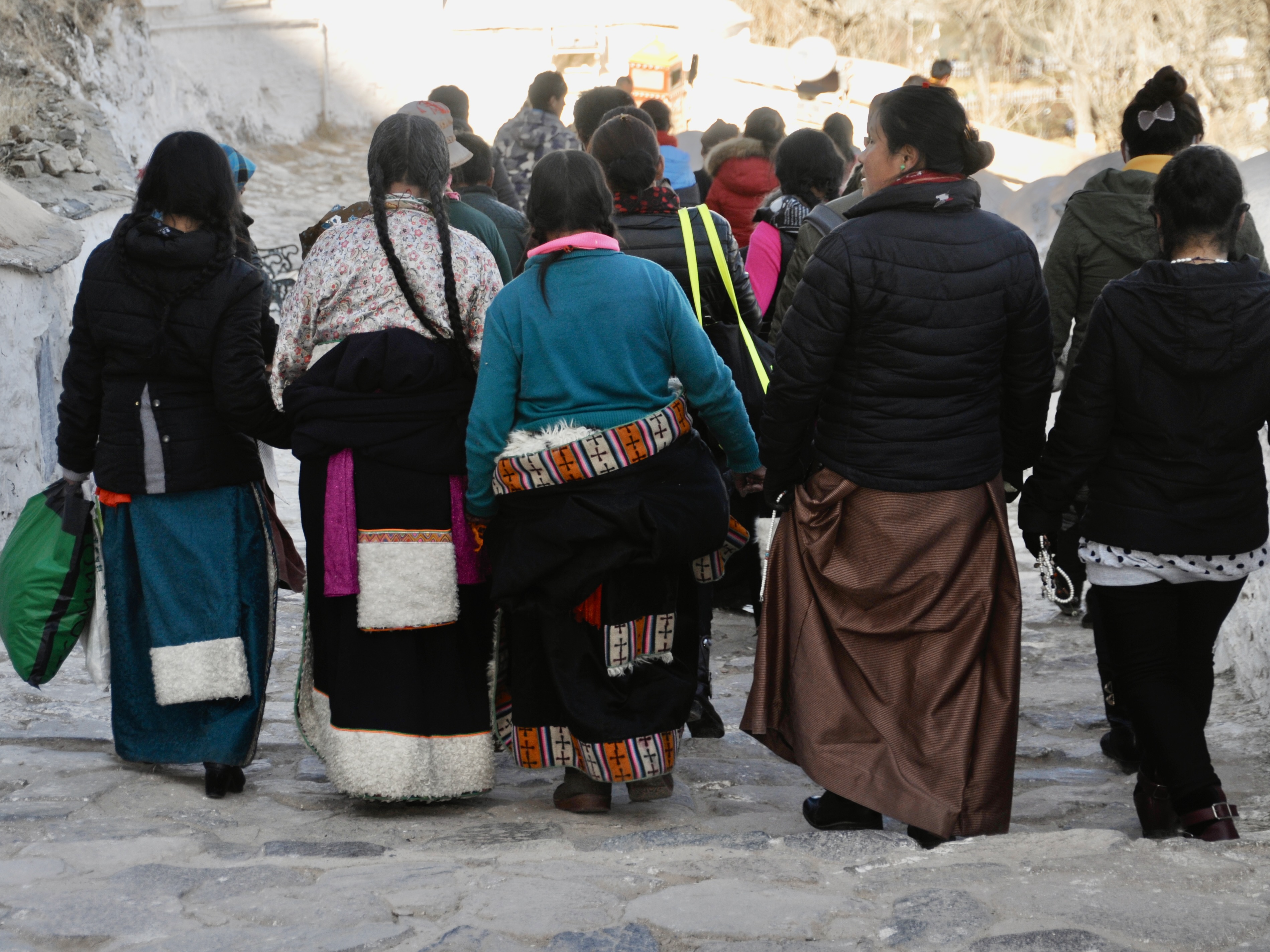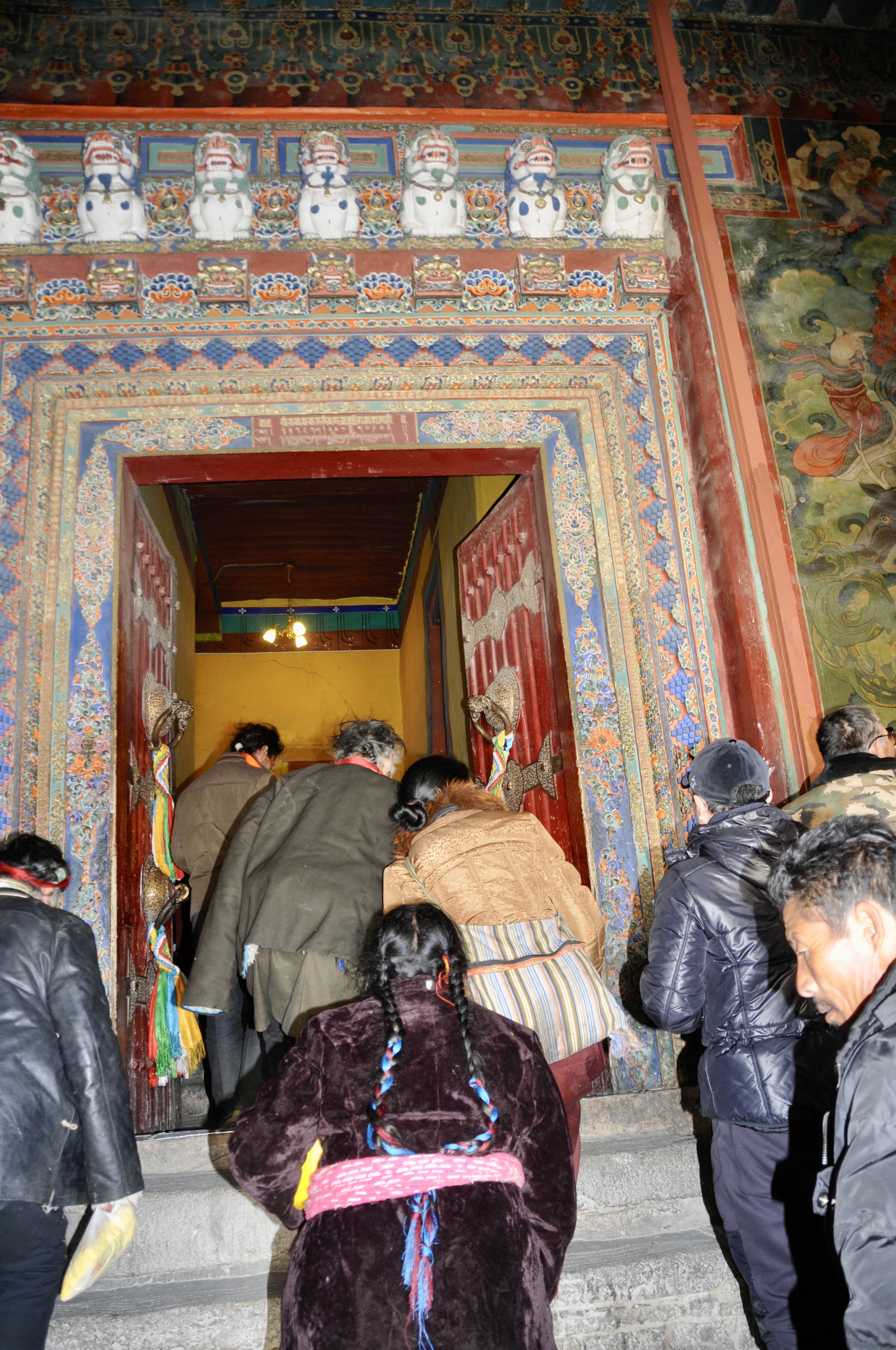 Anyway, once you reach about halfway you enter a “residential” portion on one side and the “religious” portion on the other. Frankly both looked very religious to me. Because it was winter and there were not many tourists other than pilgrims from the countryside, you are allowed to stay as long as you want. In the summer you get a short period (cannot even imagine doing the climb in any shorter time span). Tibetans bring offerings to the statues .. money.. yak butter (which is really like wax) and all throughout the place you see the yak butter with wicks burning. People also throw white silky scarves in certain places. No photography is allowed once you enter the inside of the structures.. which was incredibly difficult for us.. But we followed the rules. Most of all the pilgrims are farmers at this time of year because the harvest season is over. For some of these people it is an annual venture; for others it is a once-in-a lifetime experience. Some people prostate themselves periodically as they go through the temple.