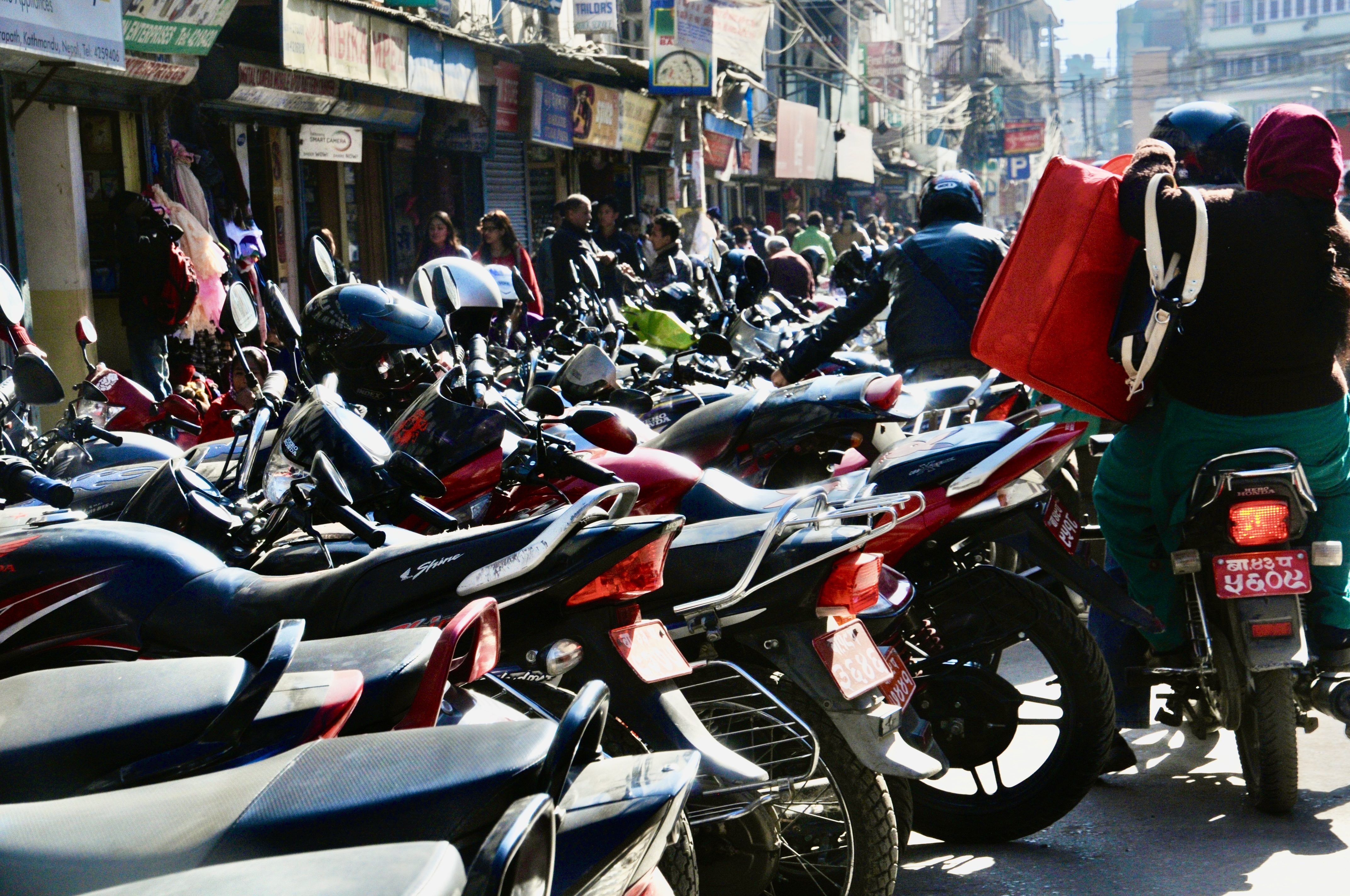Landed in Kathmandu — with great signs throughout the airport, like “tallest peaks, shortest people;” “Nepalese take their time so chill out”, etc.; went through their rather gentle customs entry; got our bags; and off we went into the traffic, pollution, and hustle bustle of the city and its 2.5 million people. We were supposed to stay two nights in a small, very cheap hotel and two nights at Dwarikas which was clearly a very upscale and beautifully appointed hotel (that we found on the Internet). Given that we still were under the weather, last night we made a very last minute decision to stay at just one hotel instead of packing and unpacking after just two days. So naturally we picked Dwarikas.