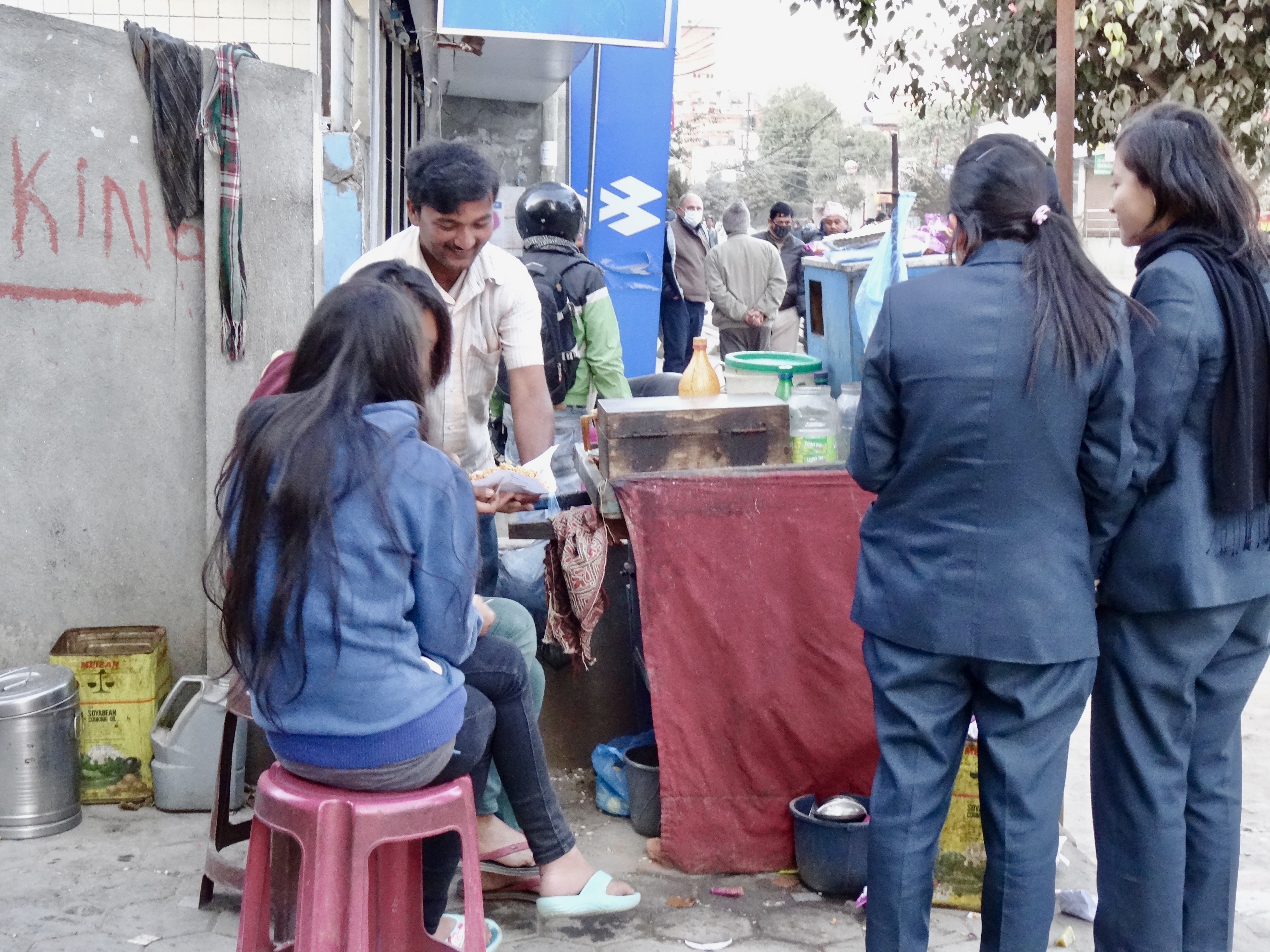 Then we walked to another part of town for Nepali food, a neighborhood joint (again we were the only westerners) where we had momos, and a “set” dinner — typically Nepalese with many different dishes and delicacies surrounding rice. Then back to the hotel.