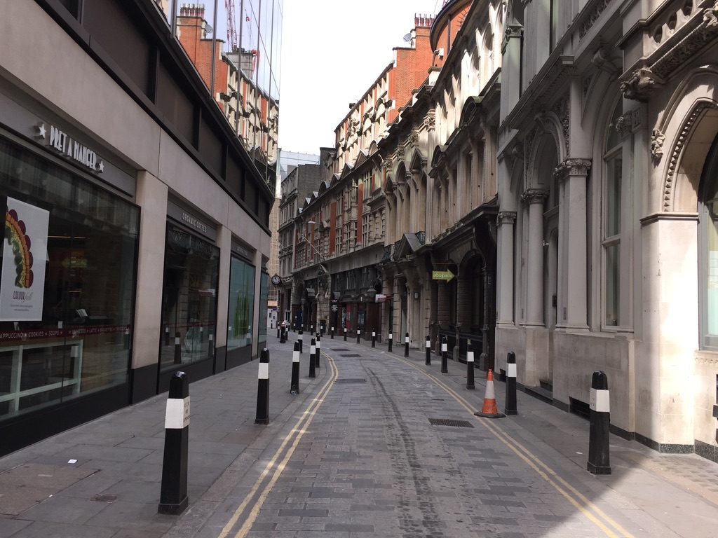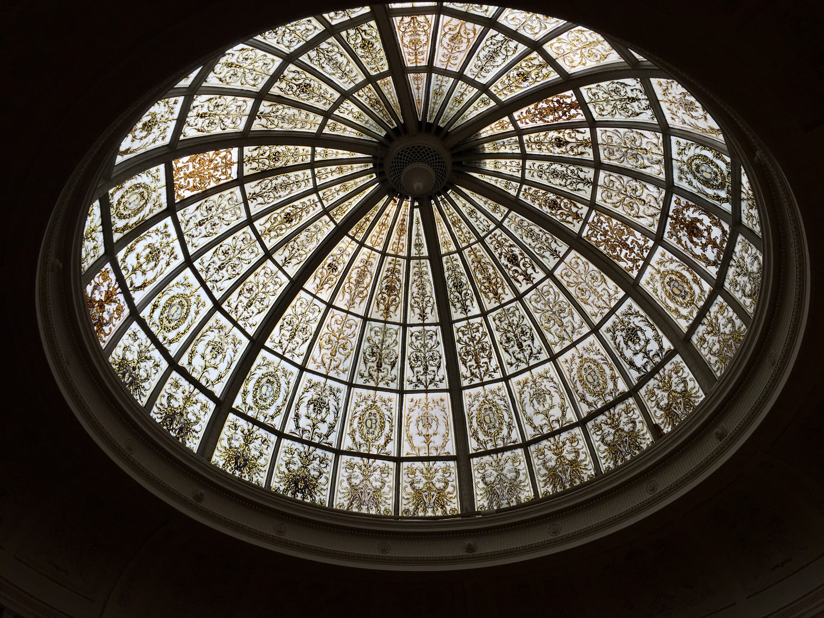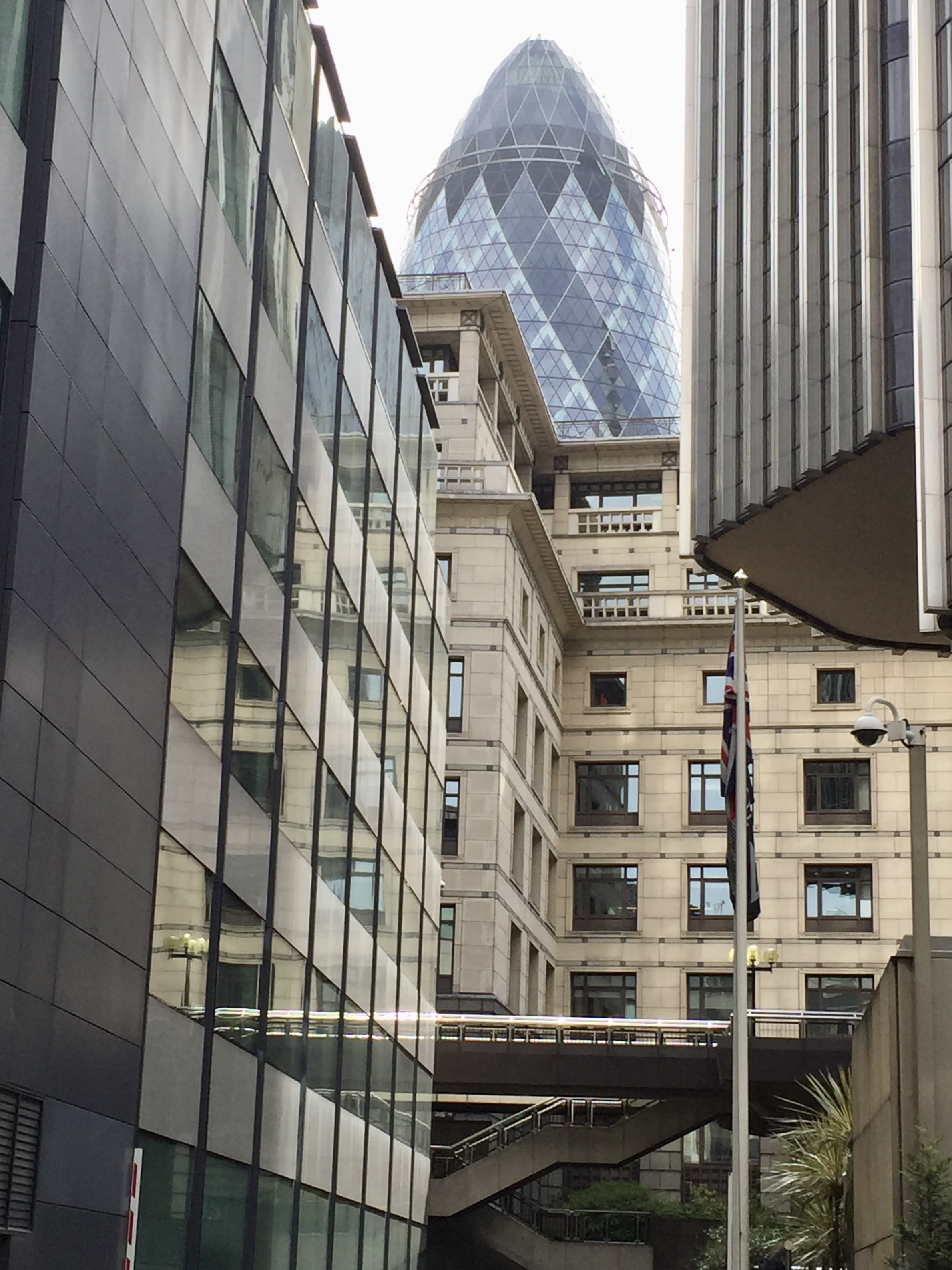 Immediately took the Heathrow Express to Paddington and then taxi to the Threadneedles Hotel (located in the one-square-mile of the City of London). I chose Threadneedles because it’s affiliated with Marriott and I had a lot of points. I feared it would be a typical Marriott and I generally shy away from American chain hotels when traveling. But Threadneedles is actually quite nice — located in a former bank building with very high ceilings throughout and a wonderfully huge stained glass dome in the center of the lobby. I believe the dome is from about 1850. The hotel is sort of eclectic old and new. Rooms are large and very “connected” — so I’m a happy camper. And the location is great.