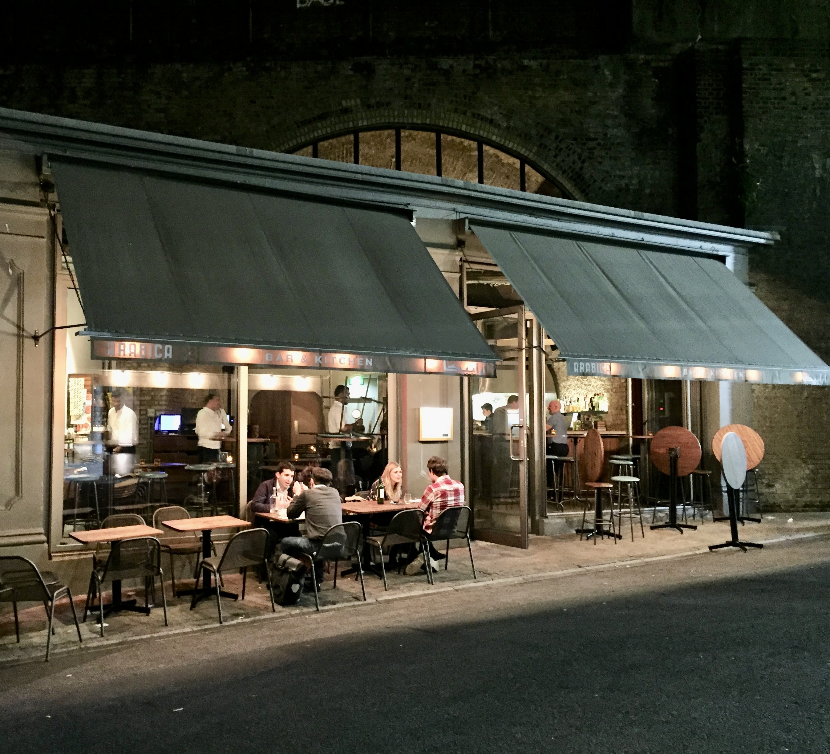 After this, I headed to the hotel to get a sweater (It’s in the 50s and 60s) and then met up with Lara and walked to Spitalfield Market and Red Church street… and then eventually made our way to dinner!!! Went to 40 Maltby — which is a small place (yet another one of these tiny restaurants) where you only have stools, no chairs… and it’s literally located under the arch above which the train whizzes by.. creating the feeling you are inside the station. But the food is great.. we shared several dishes and good wine.. and lots of talk..