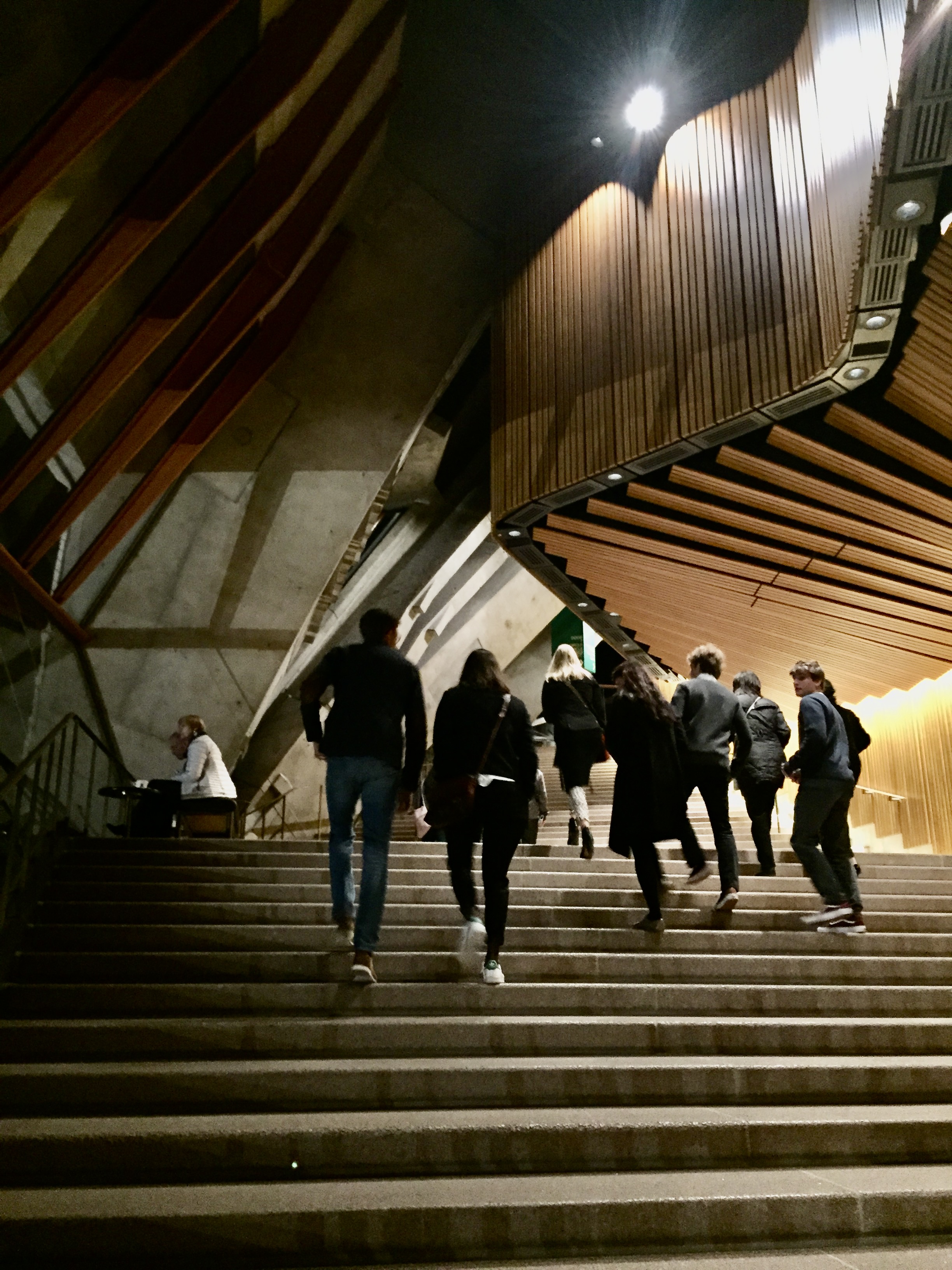 The Opera House is pretty amazing — well beyond its totally iconic position in the harbor and viewed from numerous vantage points. It has 6 distinct performance halls. I was in the concert hall which seats about 3,000. — Turandot was being performed in the one of the other halls.. All told, the Opera House venues seat about 6,000 people. The project, the result of a competition, was 10 years late and fifteen hundred (1,500) times over budget. But so it goes!