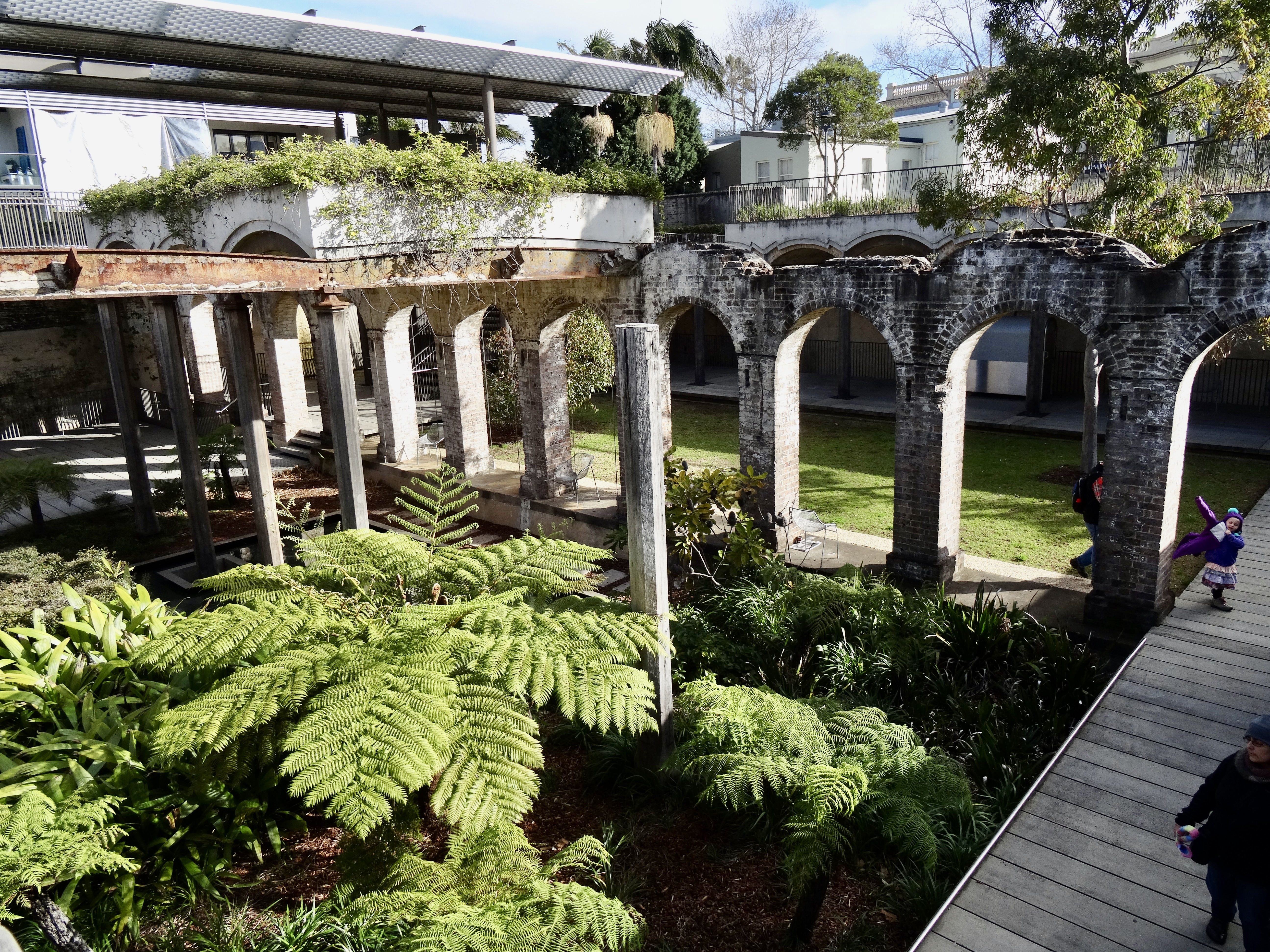 Ventured out right after breakfast (by the way, marmite and vegemite are everywhere) to Paddington Market which only happens on Saturdays. It wasn’t raining although it was cold. Took the train to Central and then decided to take a taxi to the location because it looked like rain was coming soon and figured I’d get there faster by car. (Taxis are not cheap; nothing is cheap here!) Anyway, Paddington Market is interesting.. about 150 stalls outside of a church and school. All of the products sold are made by local artists and crafts people — from bread and chocolates to clothing and housewares. Strolled around and then started to walk back to the train (25 minutes) — stopping by an interesting old reservoir that looks like a Roman aqueduct — converted into an inner-city park and a few other sites (and shops)… walking through the Darlington neighborhood. Oh this neighborhood has very interesting houses with wrought iron porches on first and second floors… a bit New Orleans-esque… in fact a lot New Orleans-esque… and the houses are row houses in groups of about 5 and situated on narrow alley size streets. It’s clear that they went into disrepair at some point and now are being renovated with serious efforts to rehab according to original plans, so they are fantastic.