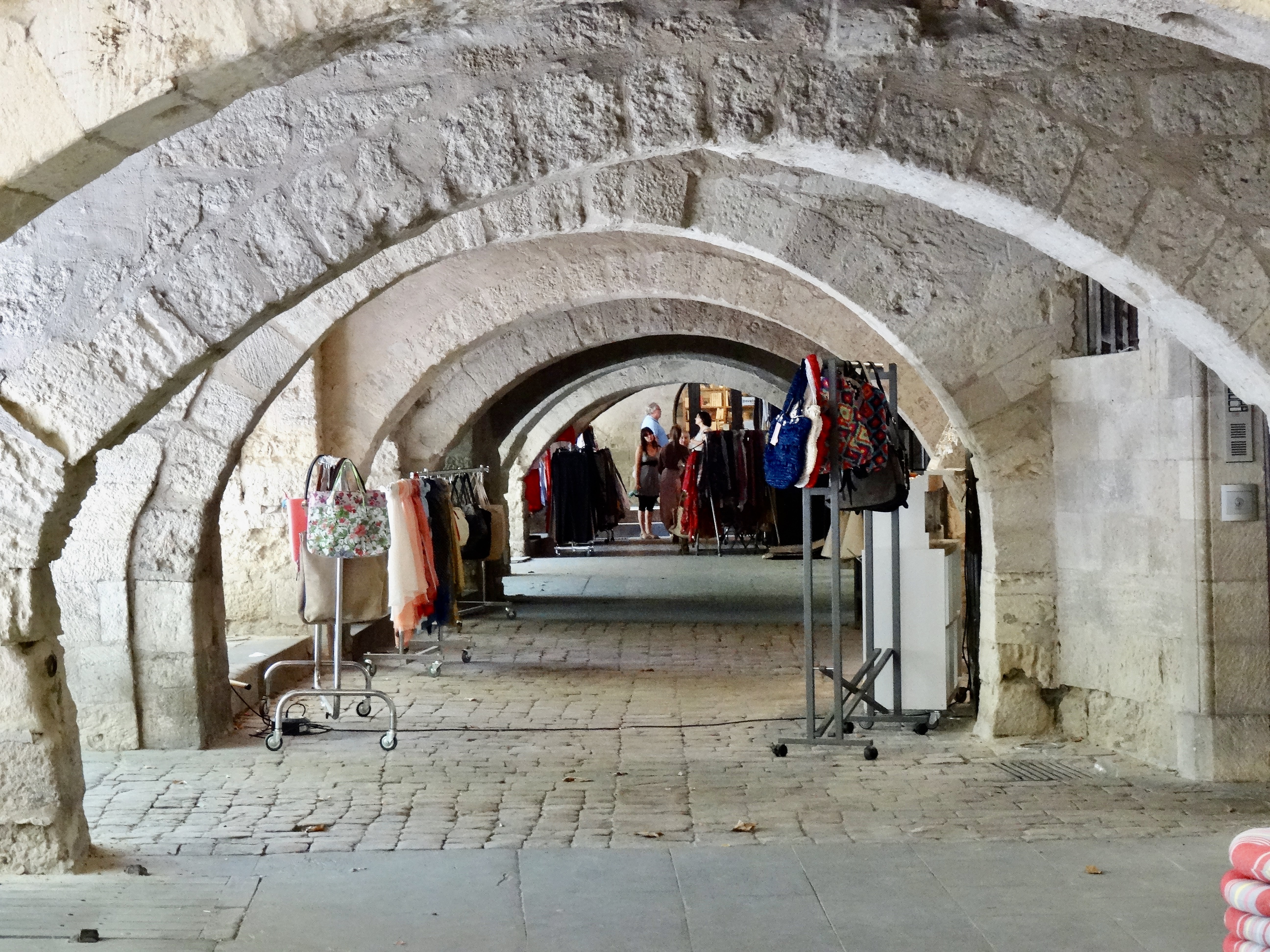 Uzes is yet another medieval village that retains its great complex of winding, narrow streets and squares.. but it seems to have become overwrought with tourists and shops which is unfortunate. I remember being here just a few years ago and it was much calmer and less commercial than today. I was even in Uzes once in winter and it was extremely cold.. but far more beautiful because it was pretty deserted and felt more like a real place.. In any case, Uzes’ history is tied to its civility and tolerance and urban life that is documented as far back as the 5th-century. Jews were apparently settled there as early as the 5th century, and they were welcomed in the town, and because of the Bishop’s position on this a complaint was made and he was forced to change his ways forcing all who would not become Christians to leave the city. After he died.. many who had been baptized returned to being Jews and were then expelled from the area. Uzes rose to become a center of textile with many of the well-known Provence cloths being woven here.