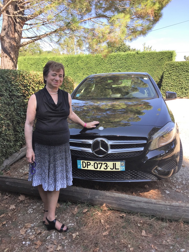 This morning we headed to Orange (about 20 minute drive)… I had actually booked a shampoo and blow dry in a hair salon there (There isn’t any place in Cairanne, and this seemed my best shot. The women in the salon were pretty funny, but unfortunately my French is not at the level where I can have a decent conversation, so I’m not totally certain what the topics were. In any case, they did a good job.. although my coif is a bit “pouffier” than normal.. I was able to explain that I was going to a wedding and it was a special occasion. They are also pretty big on hair spray! Anyway, Mike had found refuge in a small chapel and thus was able to nap since he had no interest in sitting in the hair salon. Afterward we strolled through Orange, had a “salade” that included tomatoes stuffed with aubergine and a summer squash stuffed with couscous.. big enough to share (which we did, but which is clearly uncommon). Then off we went — back to Cairanne to get ready for the big event. Dressed and drove off in style in that Mercedes that the car rental company gave us (which feels comfy at about 95 MPH on the autostrada)… Getting kind of accustomed to such a cushy car.. what will I do when I return to my Prius and my Fit?