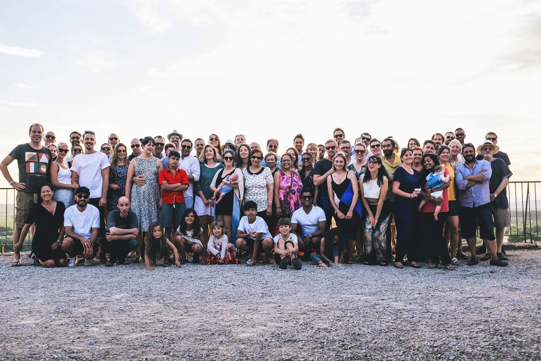 Then one of the guests who apparently is a big time photographer having worked for GQ and several fashion magazines and having shot the weddings of some very hip folks from big name British bands did a huge group photo against the setting sun over Cairanne and the vineyards.. What could be more perfect?