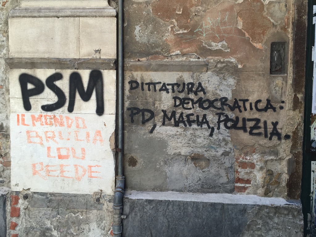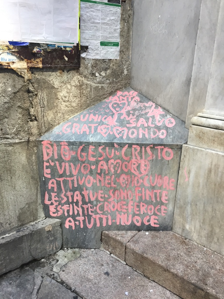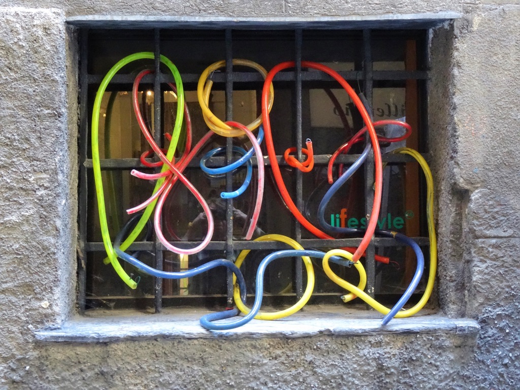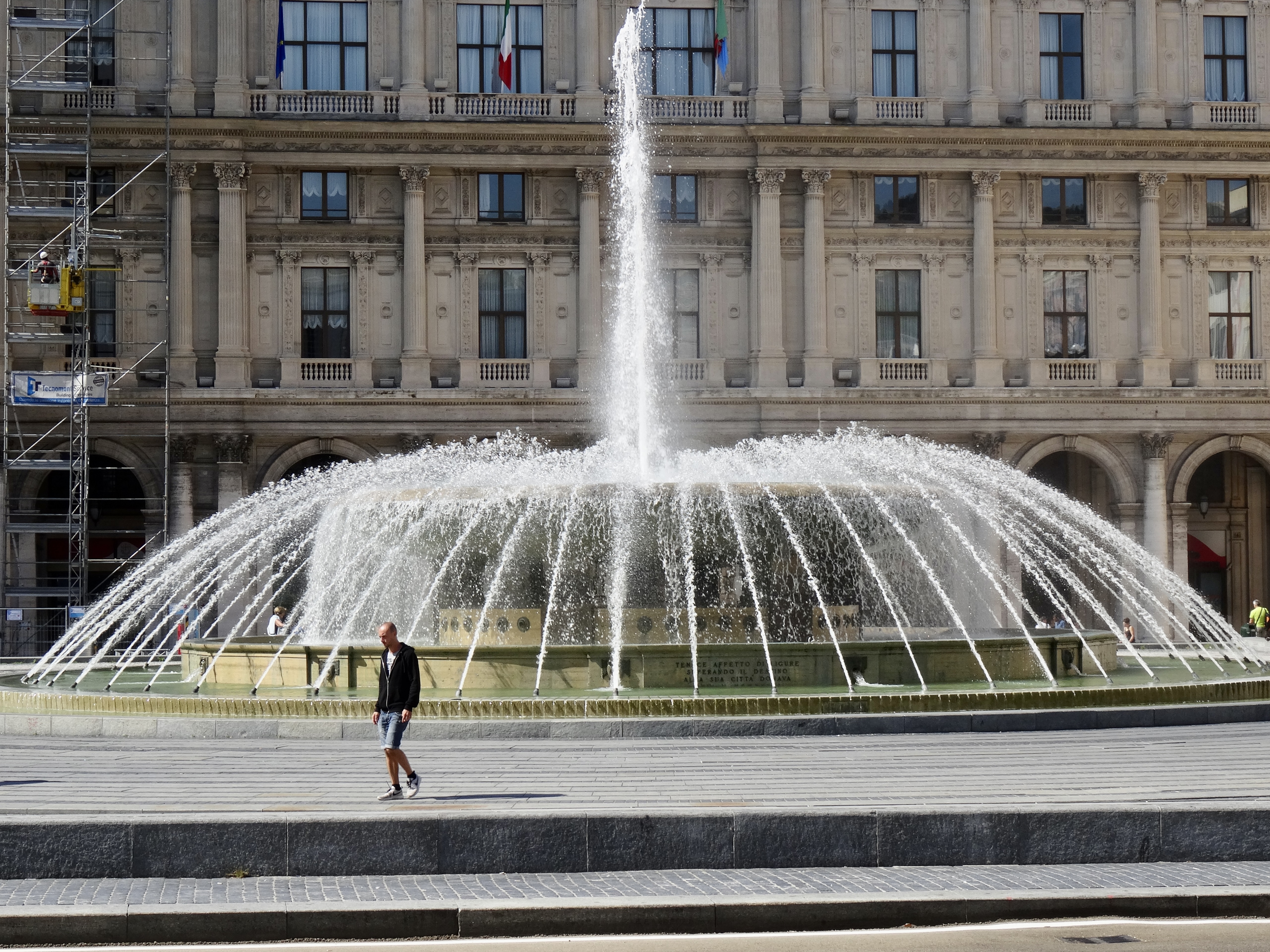 So, today we strolled Genova — walked through the medieval area (which turns out is very very close to our hotel (so at least the location is good).. the old city is pretty seedy, but probably will get gentrified in the coming years. There’s some renovation going on, but that’s amid lots of buildings in great need of repair, prostitutes roaming around, etc. In any case, it’s one of those webs of narrow streets where you can practically touch the two buildings on either side if you stretch out your arms. Lots of churches buried within the streets and some on the piazzas which are everywhere. It’s very easy to get lost — if you are actually trying to get somewhere. We eventually stopped for a simple lunch in a cute place on one of these very very narrow streets… and then eventually found our way back to the hotel (no easy task).