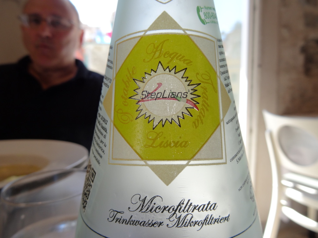 The train to Riomaggiore was totally packed.. like the NYC subway at rush hour, with people wearing all sorts of dress and non-dress.. string bikinis on the train, men without shirts, men in bikini bathing suits — you name it. Made it to the village, which was similarly buzzing with tourists (Japanese, Italians, Brits, French, and some Americans)… We had read about a restaurant that was away from the beach — about a mile walk uphill; we had the name (La Lanterna) and the location.. and made our way up the hill.. But couldn’t find the restaurant even though the GPS said we were right there. So I went into a shop and asked. Their English wasn’t very good, but finally I realized the restaurant with that name had closed and the chef had opened a new restaurant down in the marina (but a bit away from the crowds) with a new name (Rio Bistro). We figured it was worth a try and by now we were very hungry. OK.. success. Found it, and it was great.. Simple lunch.. Capresse salad and steamed mussels. Hit the bill.. Nice white wine and lots of water. Forgot to mention that it’s been pretty hot.. high 80s (which for me is totally painful) and it was probably up to about 90 in the little villages. (More on my total impression of Cinqueterra soon).
