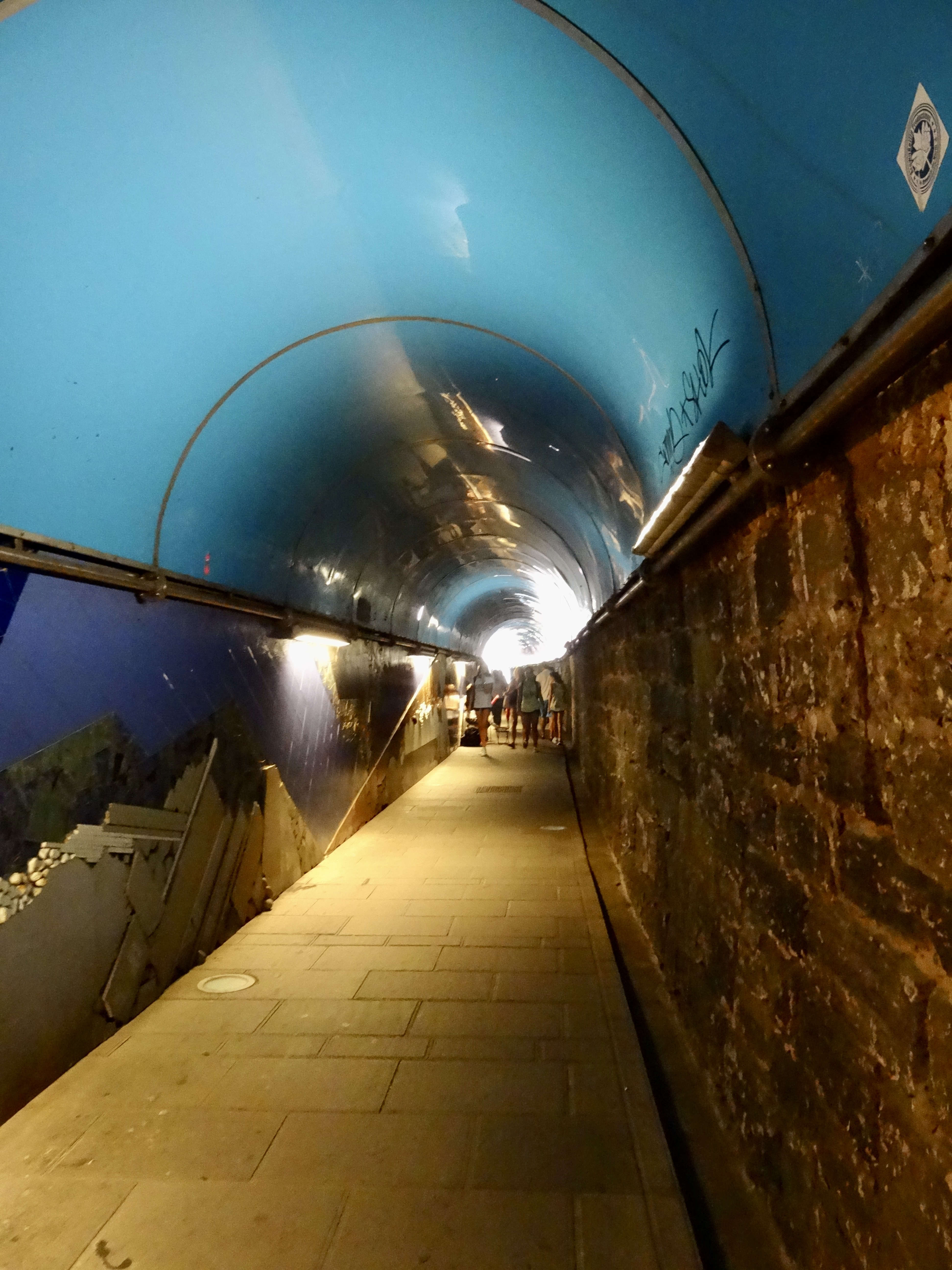 Headed back to the train to take the 3 minute ride to what is supposed to be the most beautiful of the 5 villages — Manorola. First little crisis.. we walked passed the stazione. It’s so nondescript that we didn’t see it. Finally realized and had to run back or else we’d have to wait another 20 minutes for the next train. Got to the station and the track (not easy to figure out which track) — no one seems to know.. not even the station people or the Italians. Anyway, as we waited we were standing next to two people from Sacramento area and we chatted a bit. They’ve been to the area three times before and were coming now for about five days. They basically stay at a hotel in Manarola and use it as a base — taking day walks, sometimes from one village to the next..which they said is about an hour’s walk.. not that difficult. Anyway, the train was late by about 20 minutes and as we waited more and more people began to fill the platform until it was body to body on the platform. Fortunately we were in the front. Anyway, when the train came we jumped on with everyone else.. but after 3 minutes we could see Manarola whiz by from the train and it turned out that we headed back to Monterosso along with many others who were headed where we were!